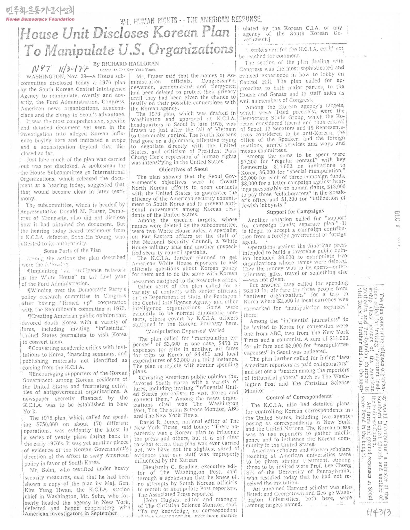 [신문스크랩]House Unit Discloses Korean Plan To Manipulate U.S. Organizations 관련 기사