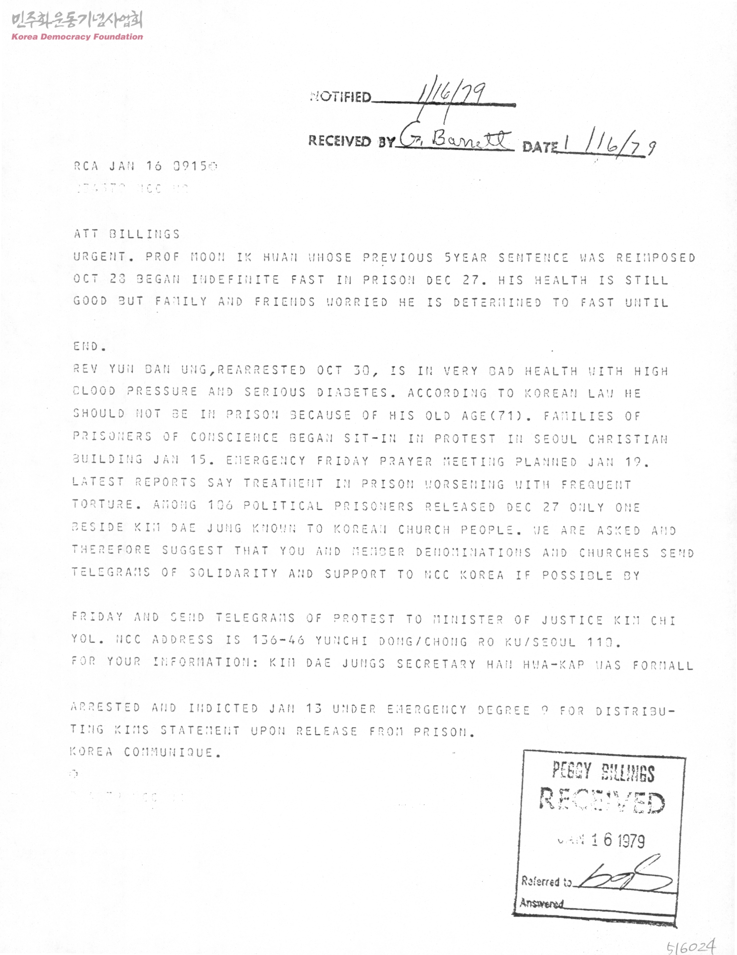 [문익환 목사와 윤반웅, 김대중씨의 석방을 위한 지지 호소문]