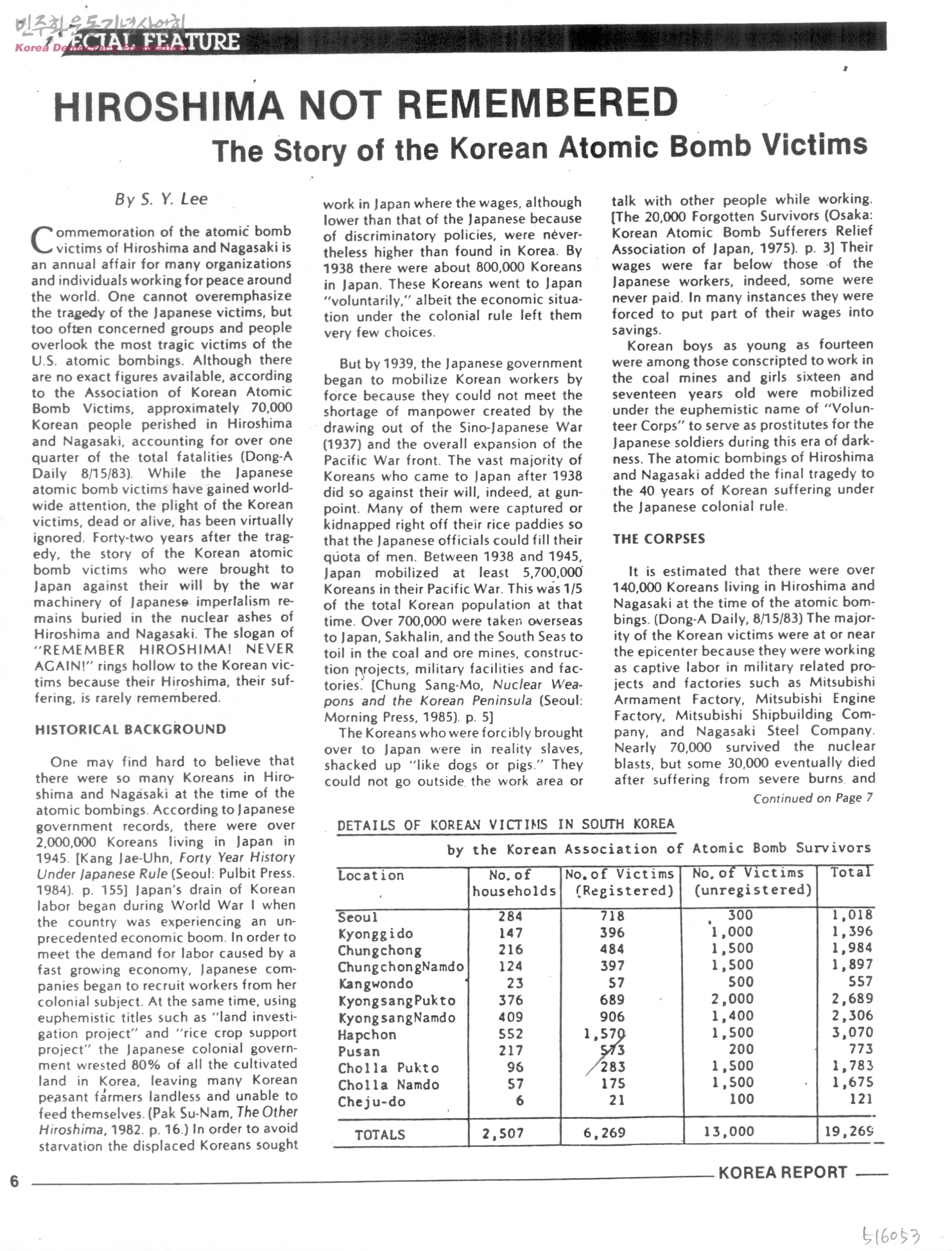 [신문스크랩]Hiroshima Not Remembered-The Story of the Korean Atomic Bomb Victims