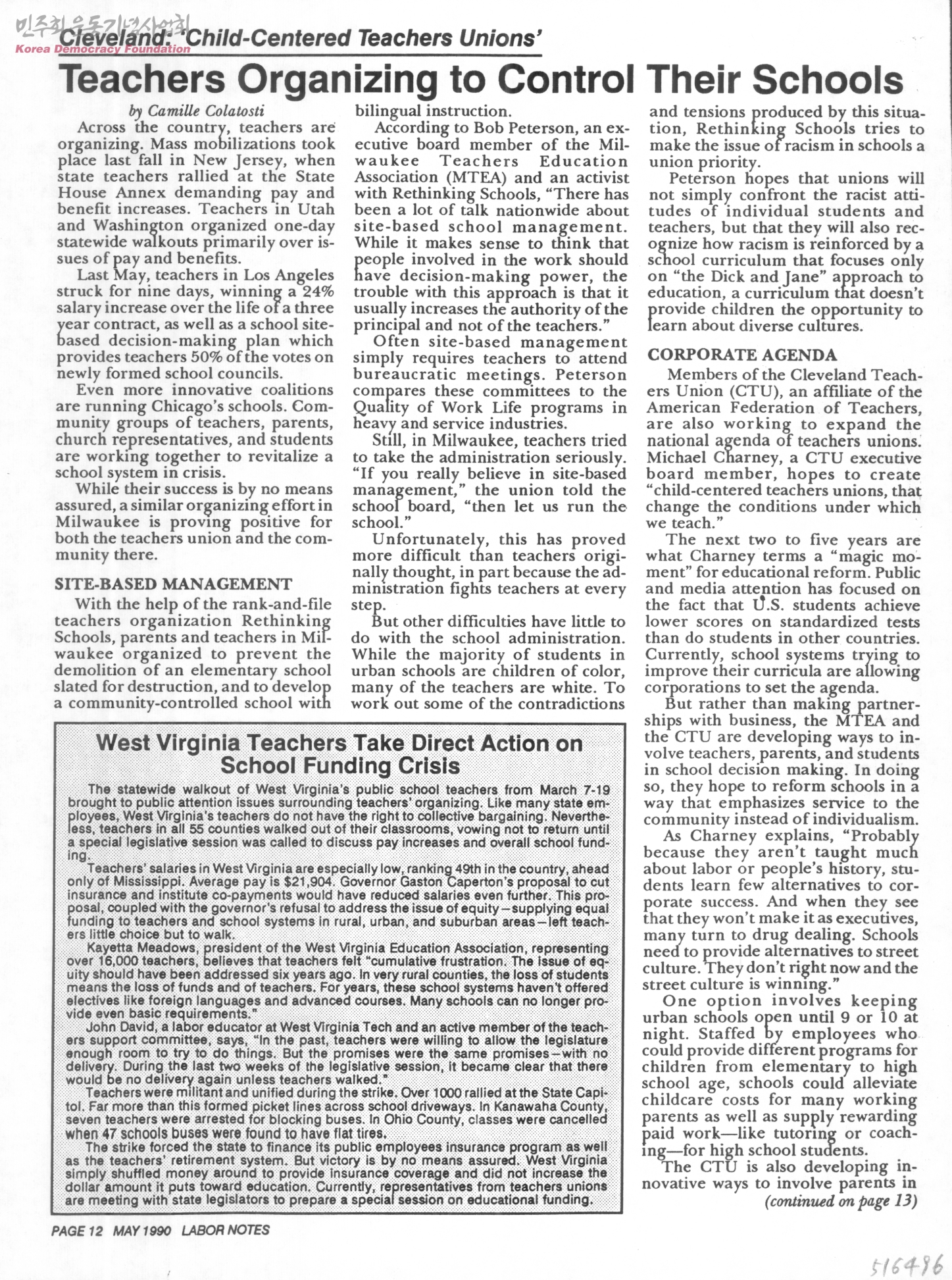 [신문스크랩]Cleaveland:'Child-Centered Teachers Unions'-Teachers Organizing to Control Their Schools
