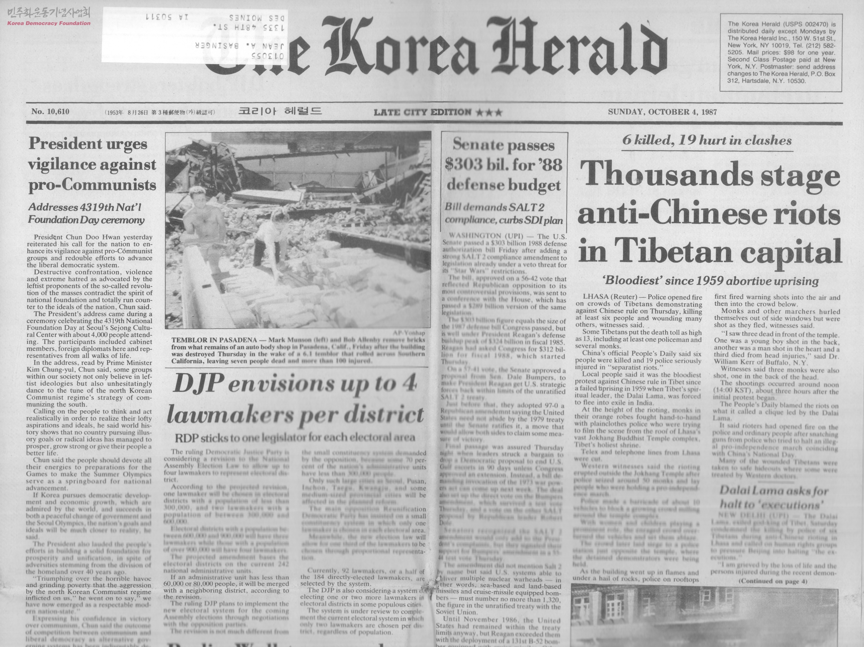 - Thousands stage anti-Chinese riots in Tibetan capital President urges vigilance against pro-communists.