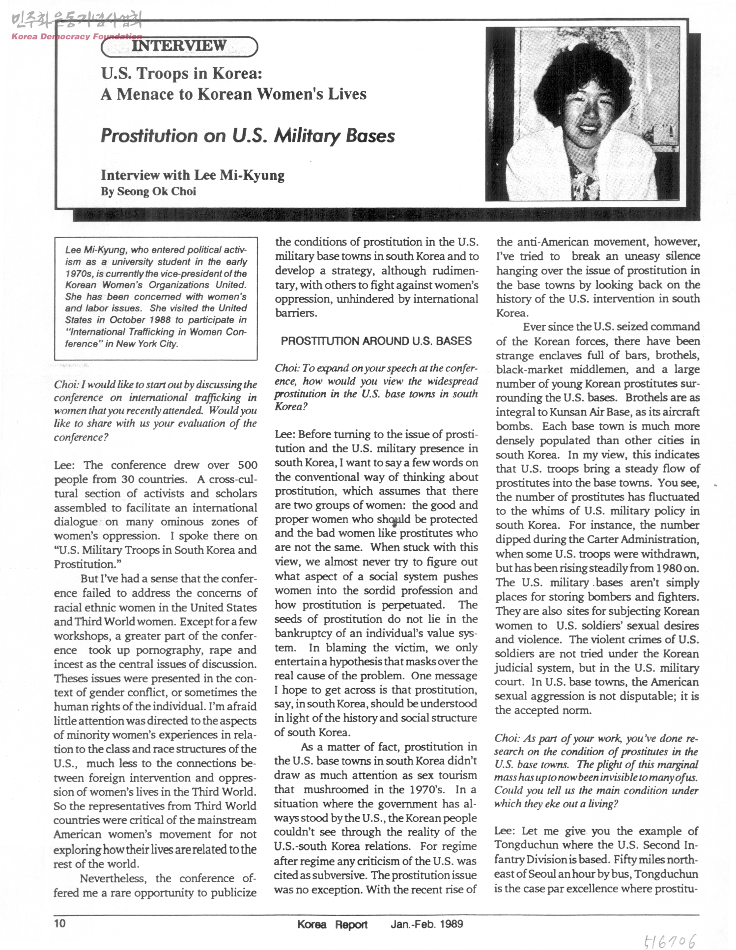 [신문스크랩][Interview-U.S. Troops in Korea: A Menace to Korean Women's Lives 외]