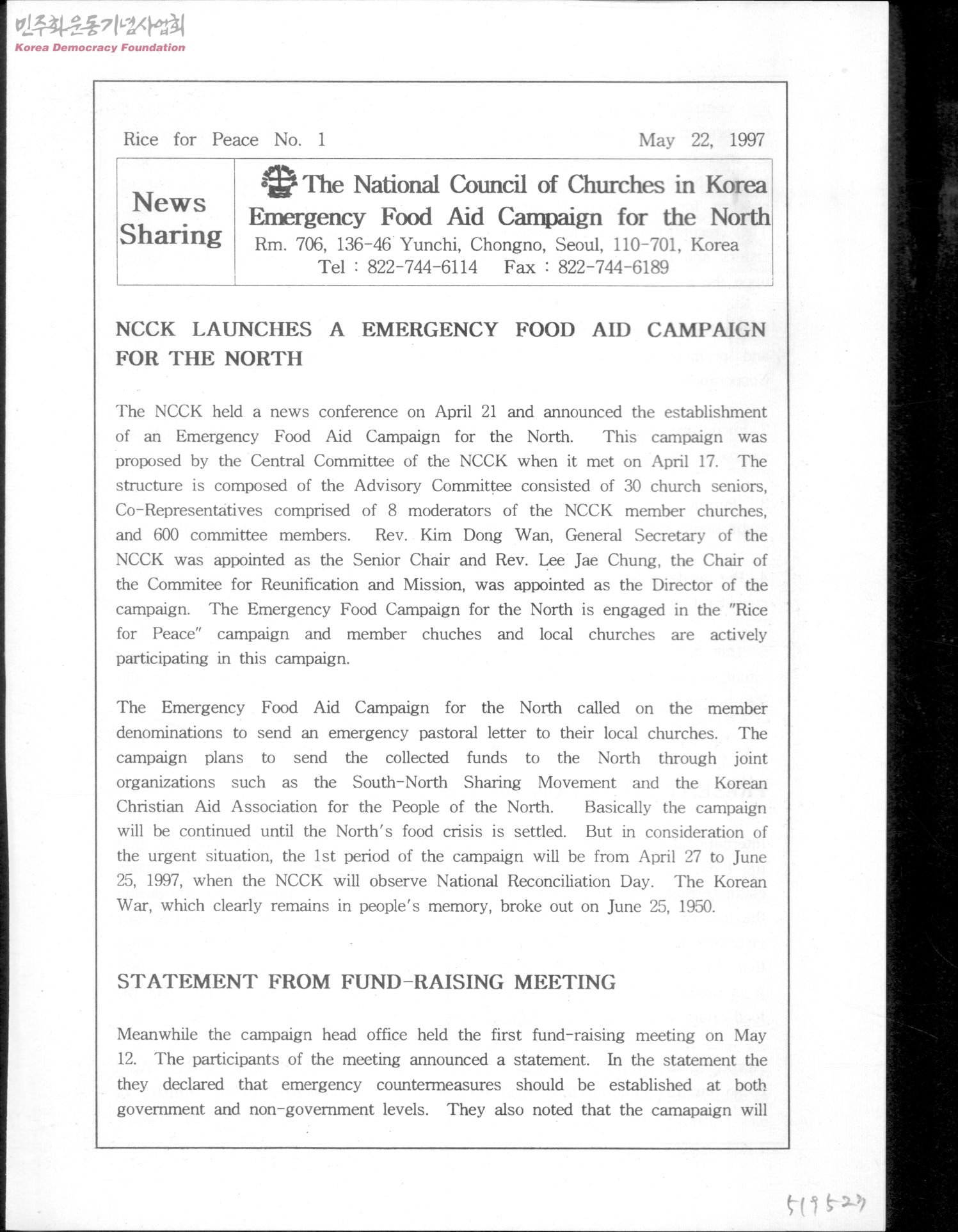 - NCCK Launches a emergency food aid campaign for the north Statement From Fund-rasing Meeting Present Situation of the North Report of UNICEF REport of Catherine Bertini, December of WFP Action!! More News More Words