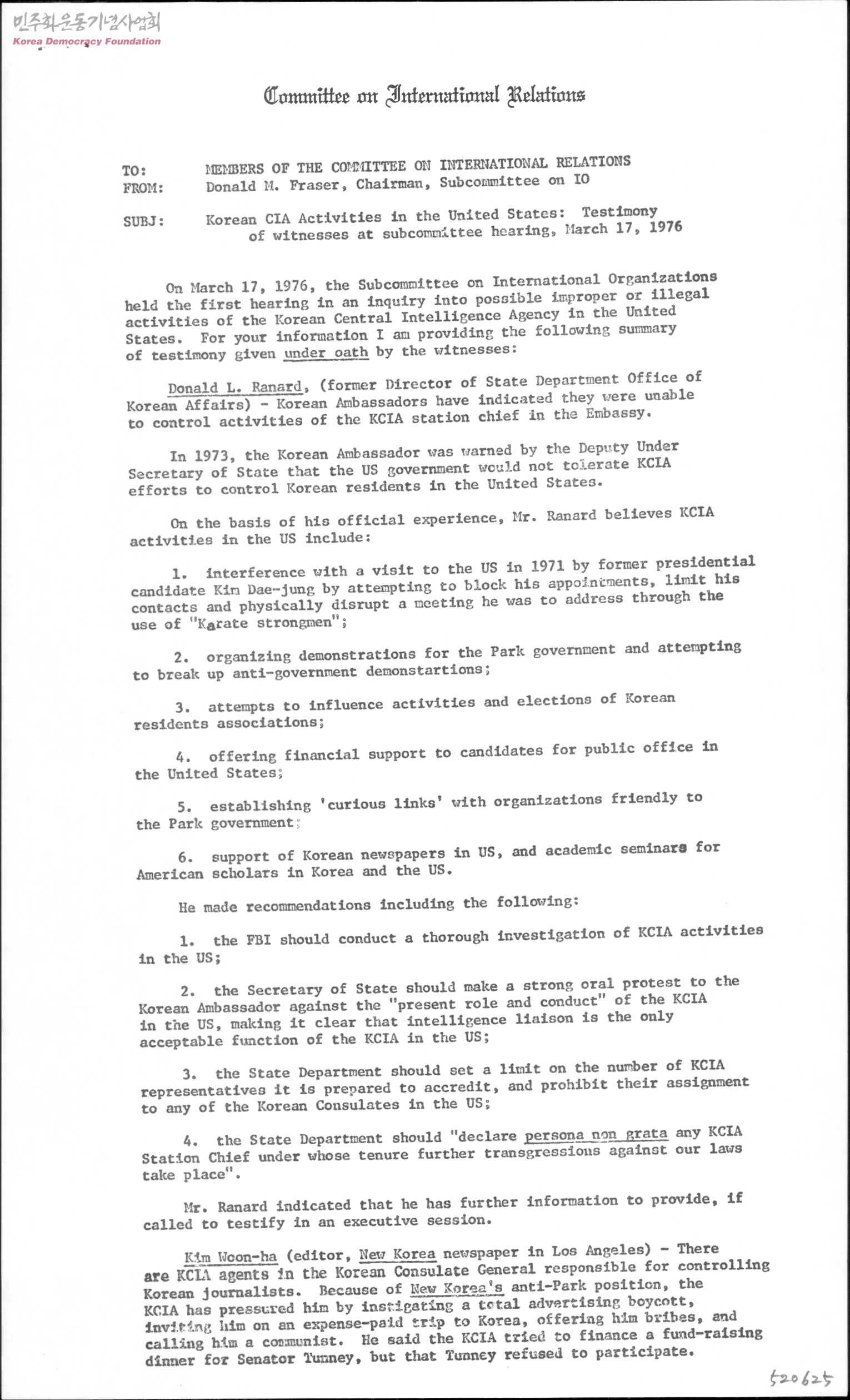 - 미국에서의 한국중앙정보부 활동 관련 글.