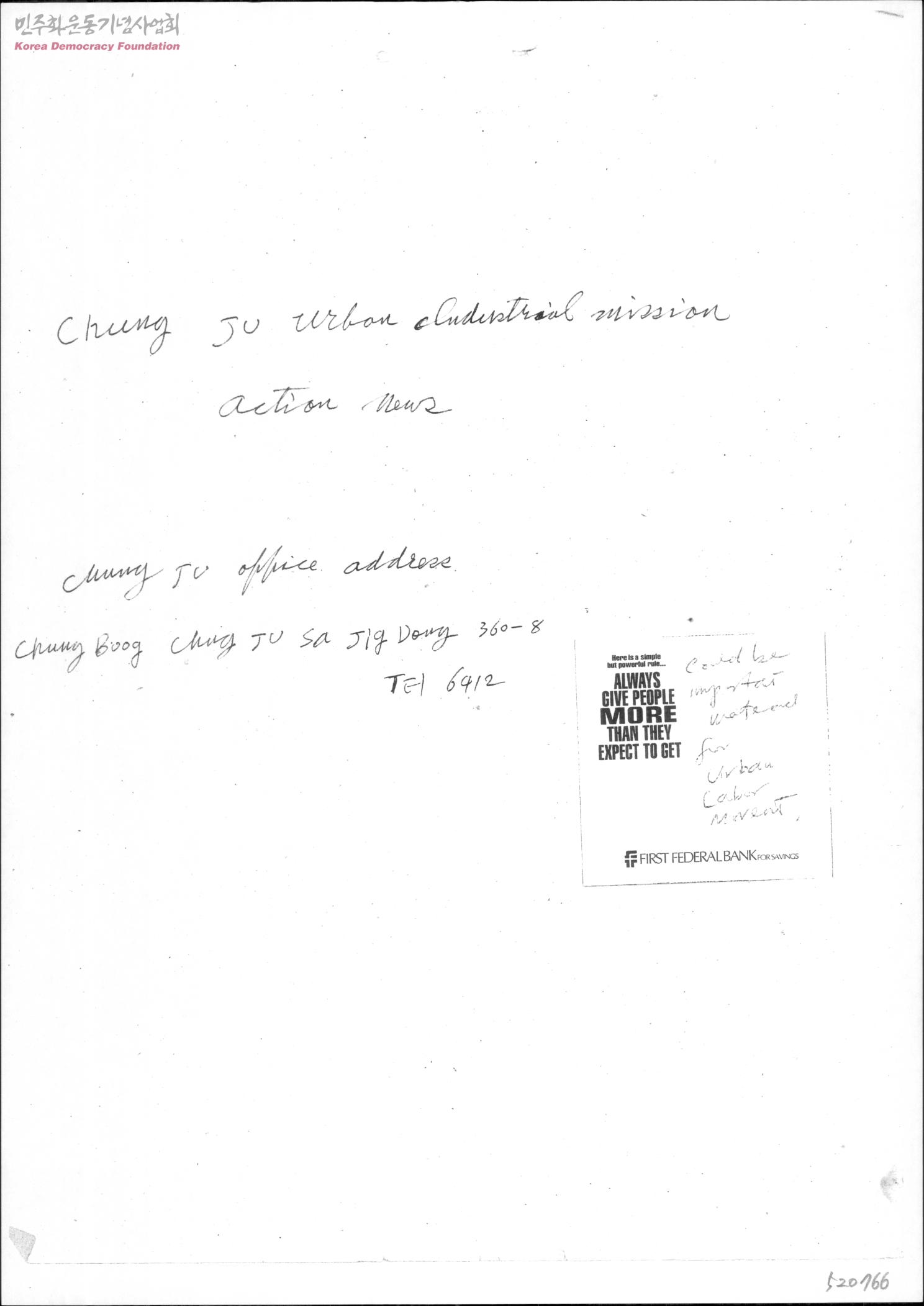 [청주도시산업선교회 활동 모습 사진 복사자료]