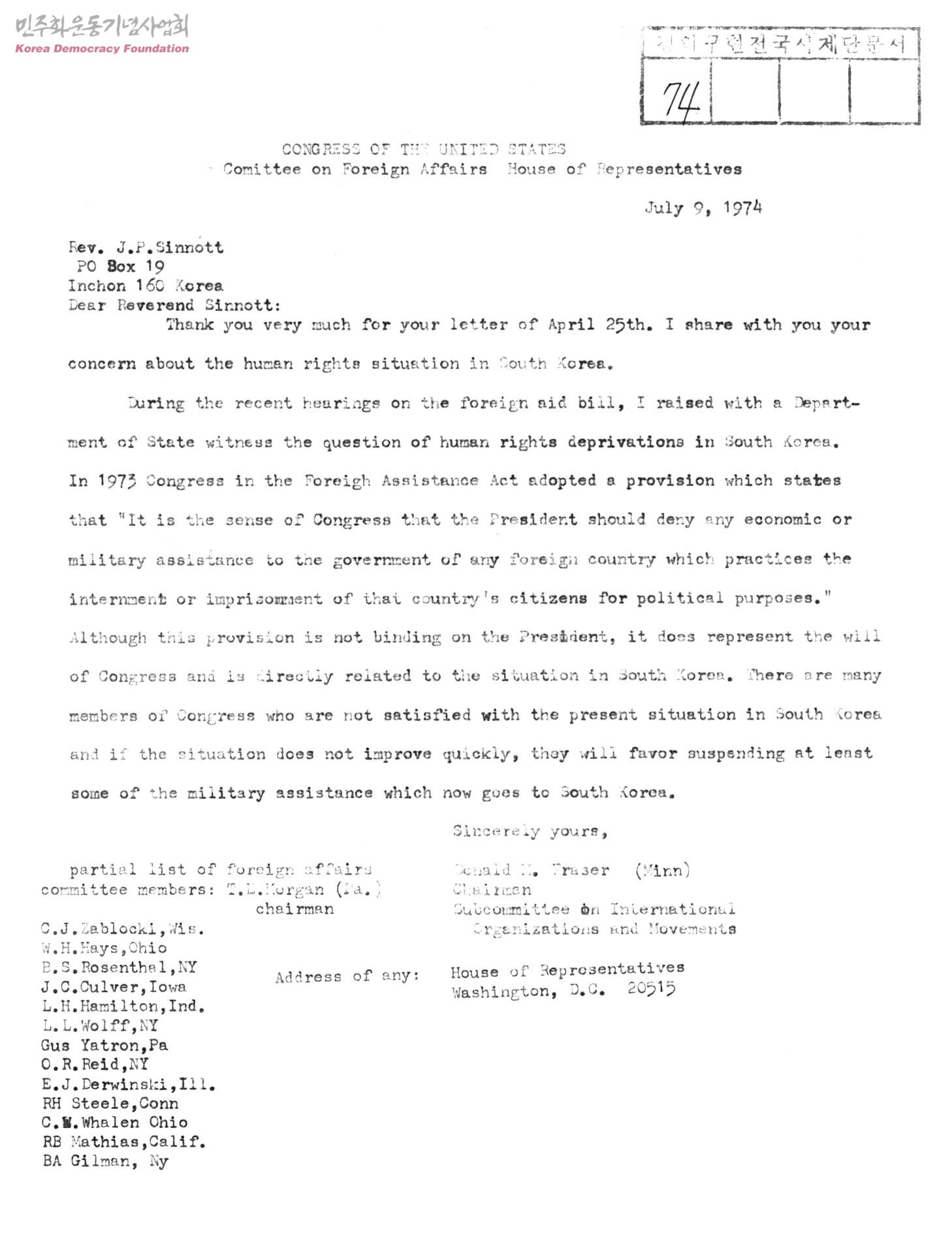 - 70년대 군사독재 정권이 교회가 설립한 사립학교를 감독청 관할로 두는것이 비민주적인 관료적 판단이며 위법처사임을 밝히는 내용의 성명서.