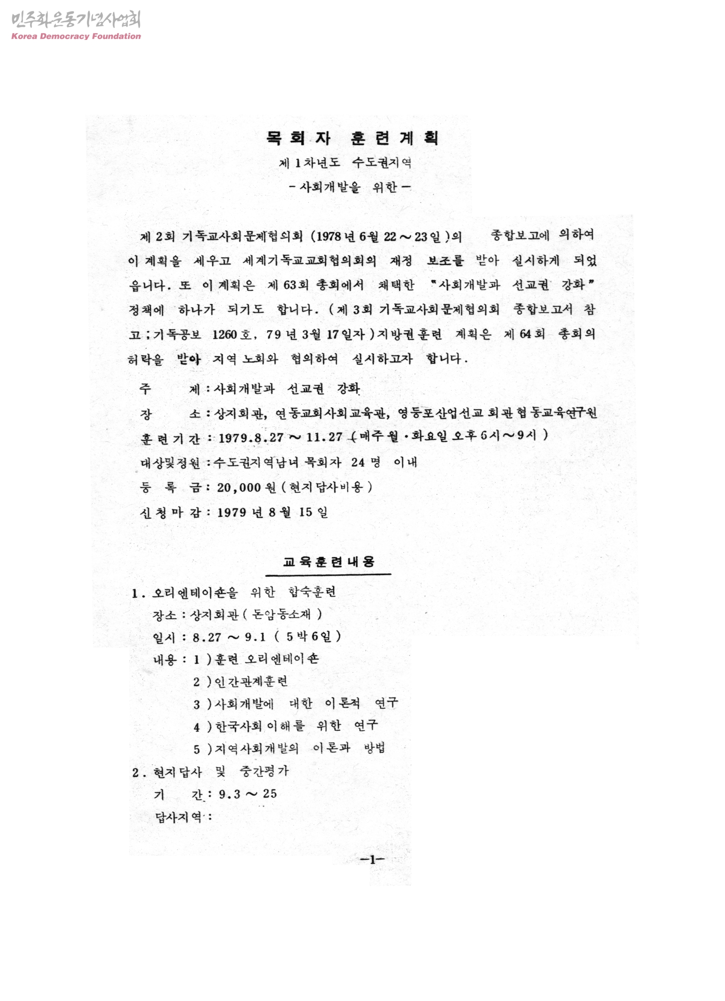 - 70-80년대 민주화 운동과 인권 문제 등에 앞장섰던 대한예수교장로회에서 각 지역별 사회선교 상황과 공동체 운동이 전개되는 상황에 대한 보고 등