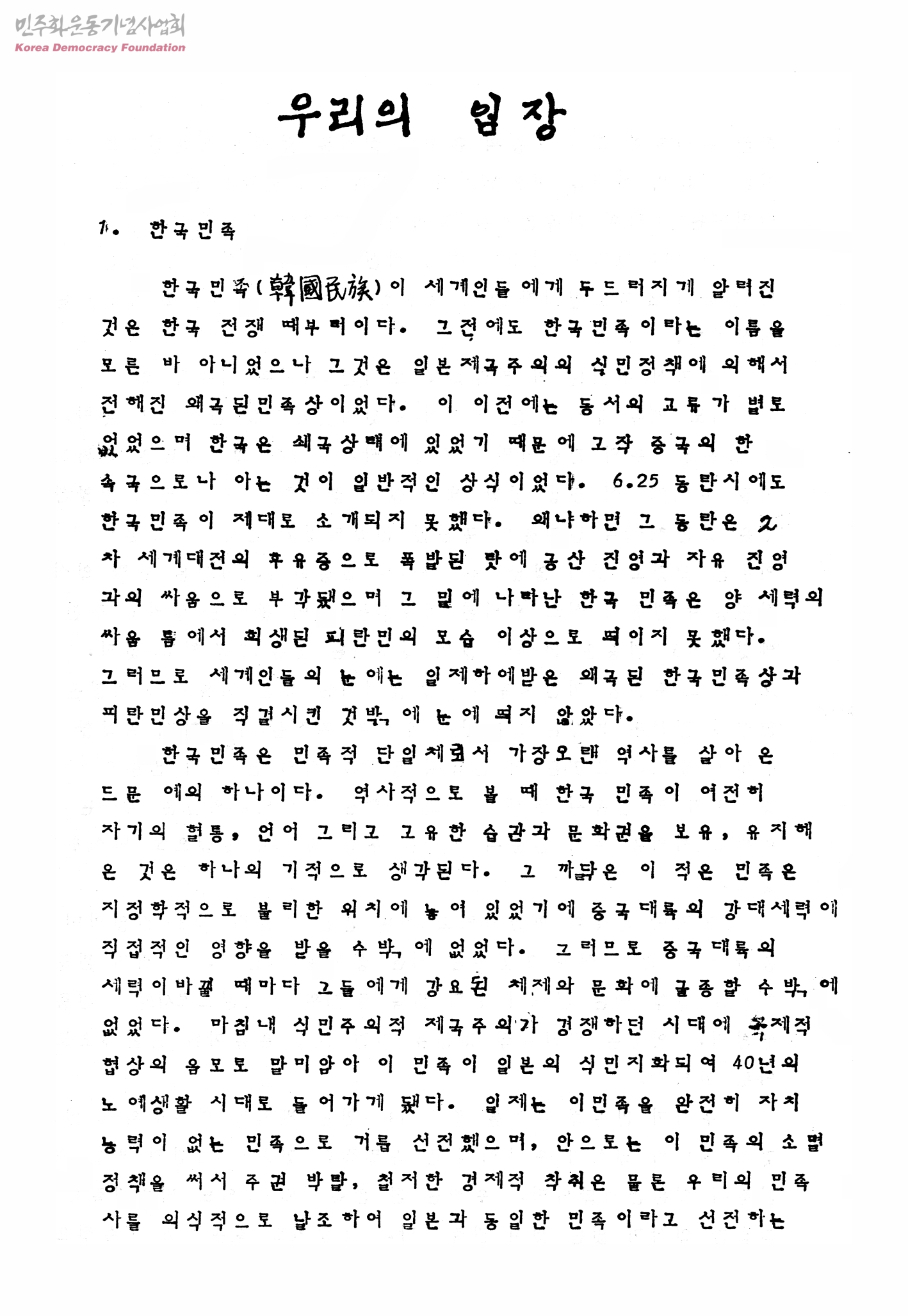 우리의 입장 [박정권의 독재에 항거]