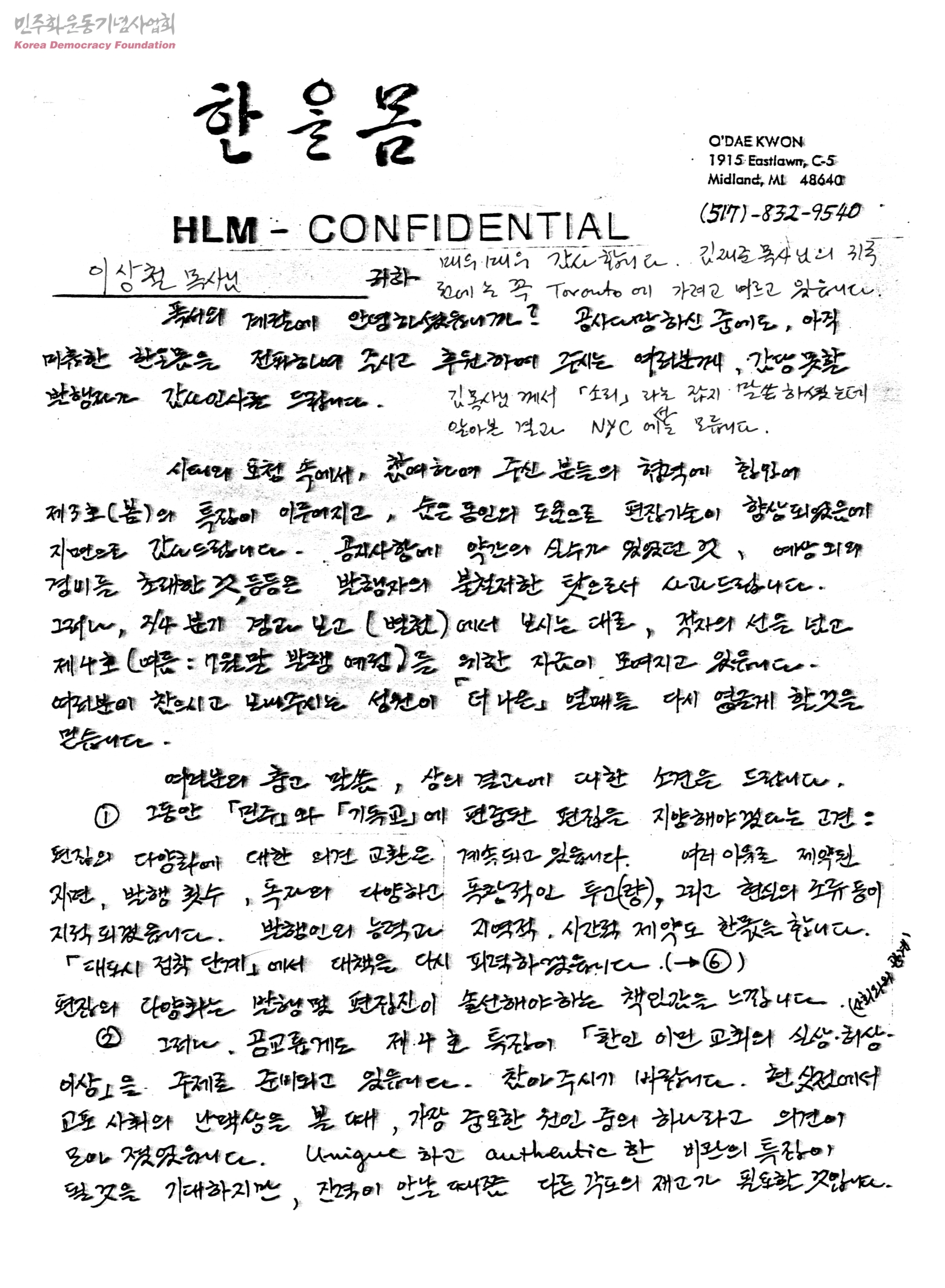 - 민주발전과 민족통일은 아마 다수 한인의 관심사이고 본지가 지향하는 과제에도 포함되어 있으나 문제는 비슷한 내용의 글들이 자주 실리는데 있다고 봅니다 * 별첨: 3/4분기 경과보고