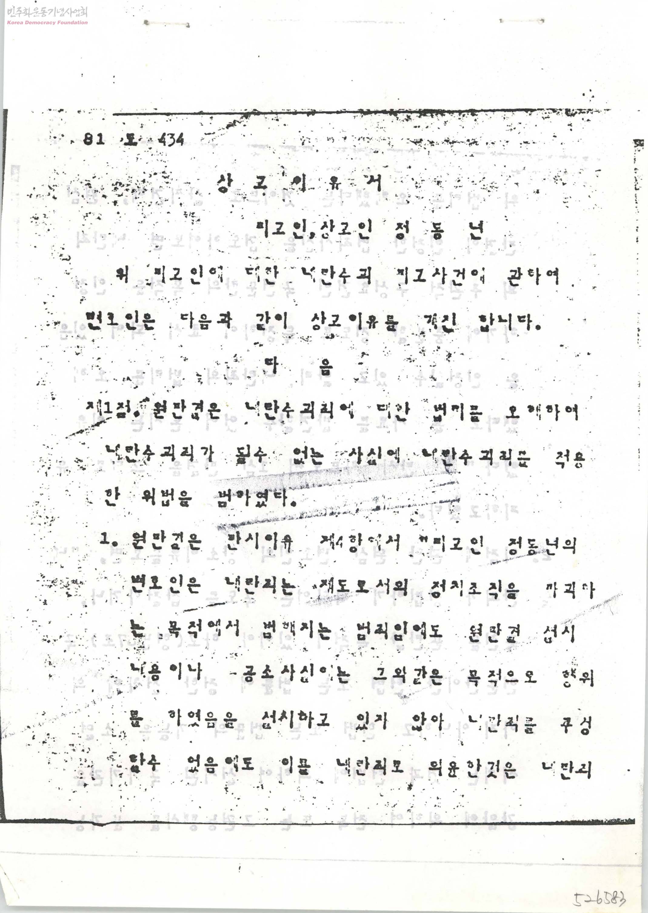 상고이유서[사건 81도434]