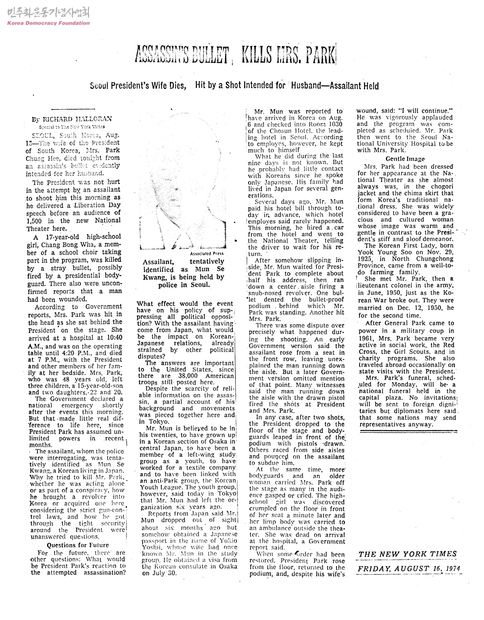 [신문기사 복사본 - Assassin's Bullet Kills Mrs. Park]