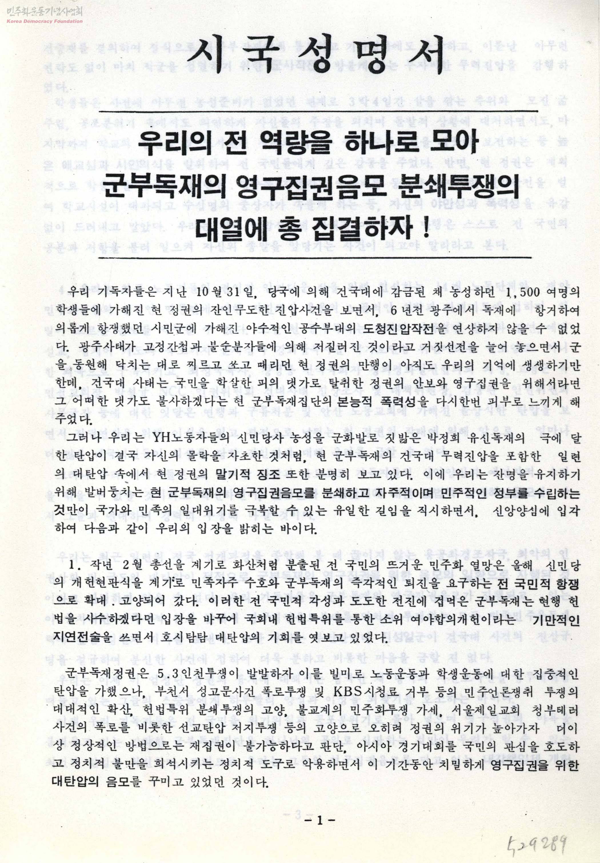 시국성명서[군부독재의 영구집권음모 분쇄투쟁관련]