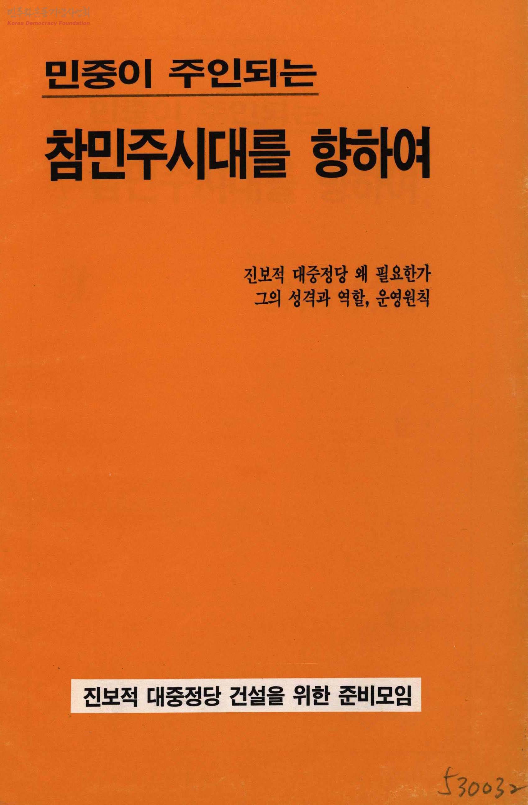 민중이 주인되는 참민주시대를 향하여-진보적 대중정당 왜 필요한가 그의 성격과 역할, 운영원칙