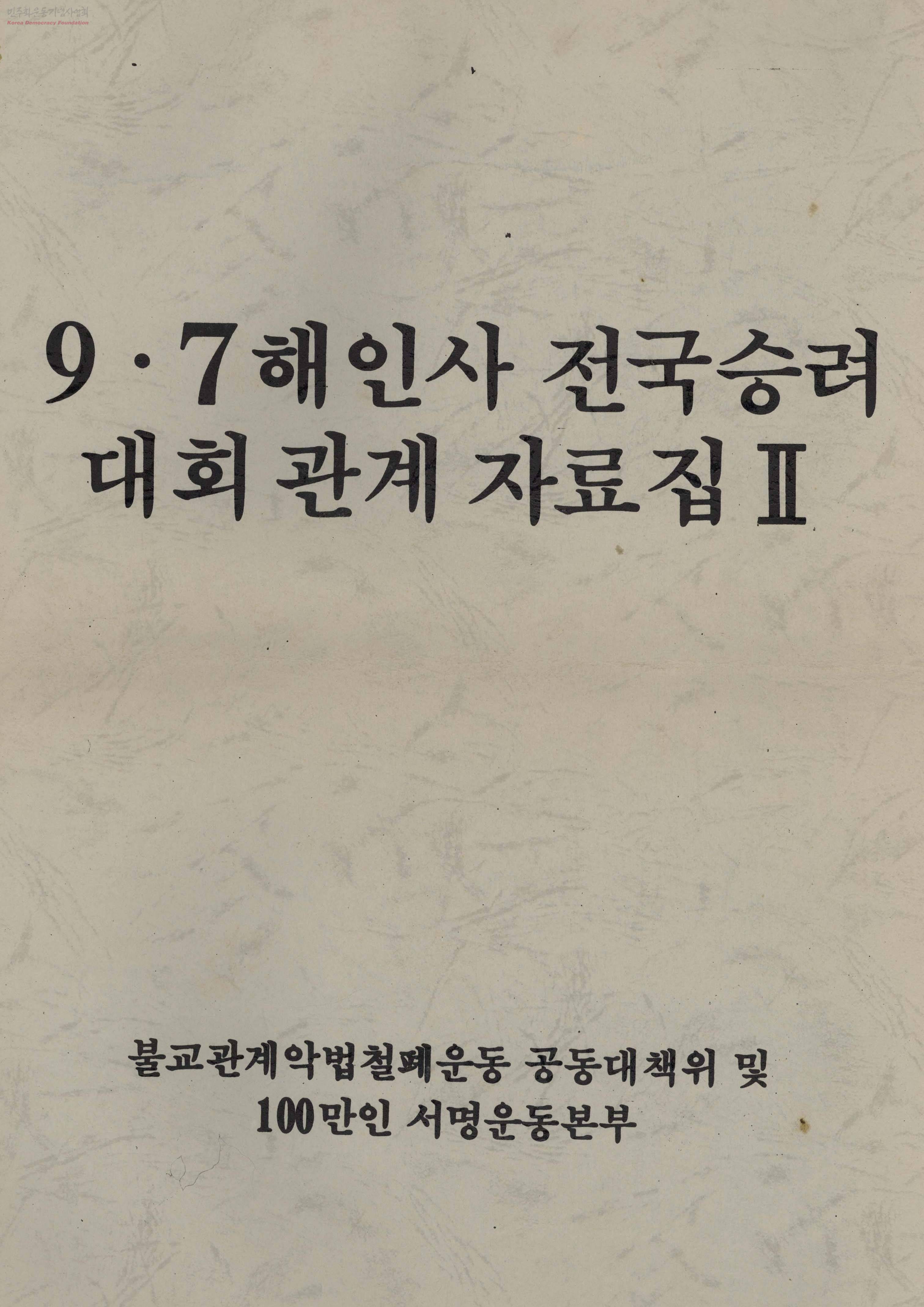 9·7해인사 전국승려 대회관계 자료집II