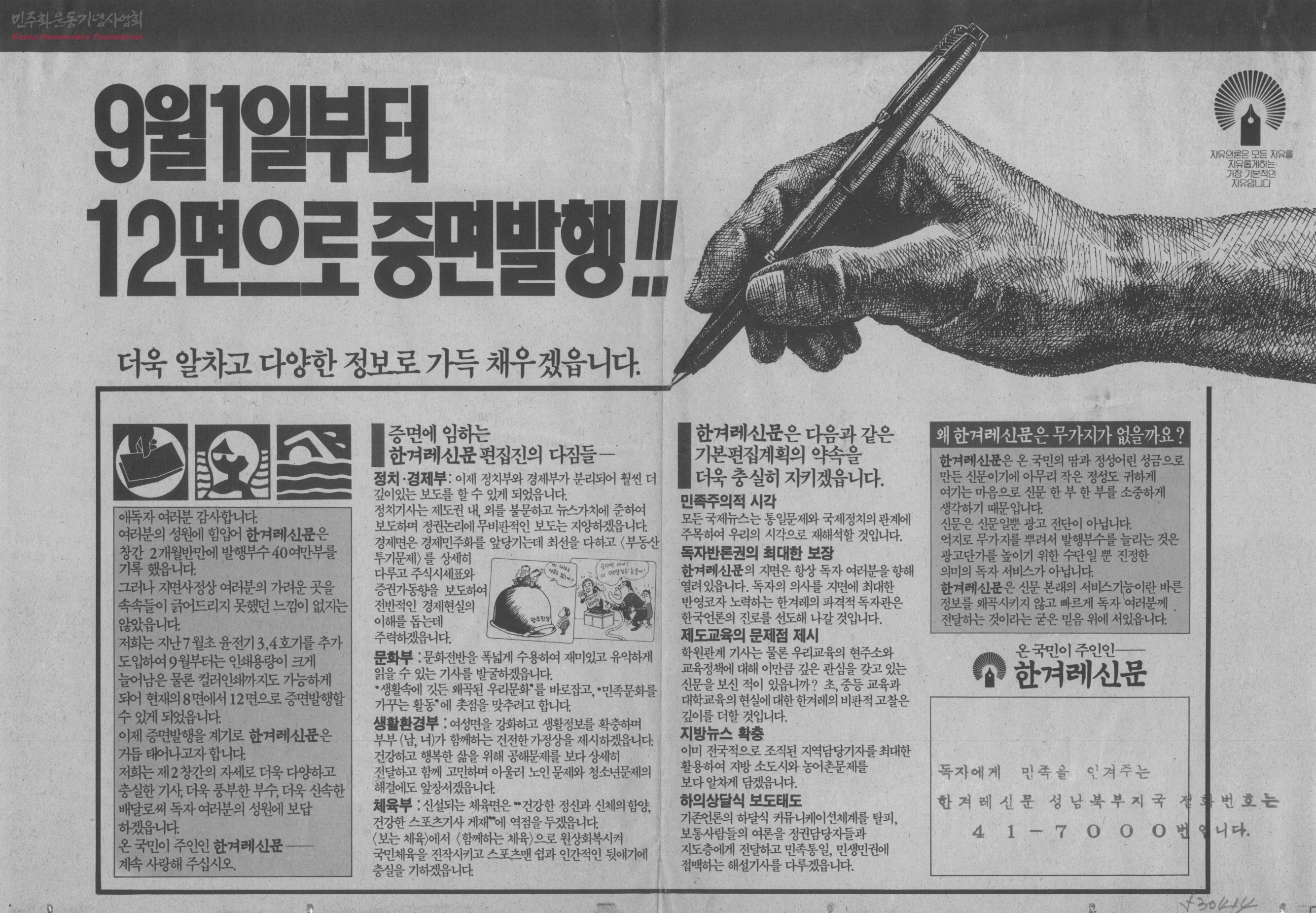 - 증면발행을 통해 다양한 정보로 가득 채우겠다는 한겨레 신문사의 공지