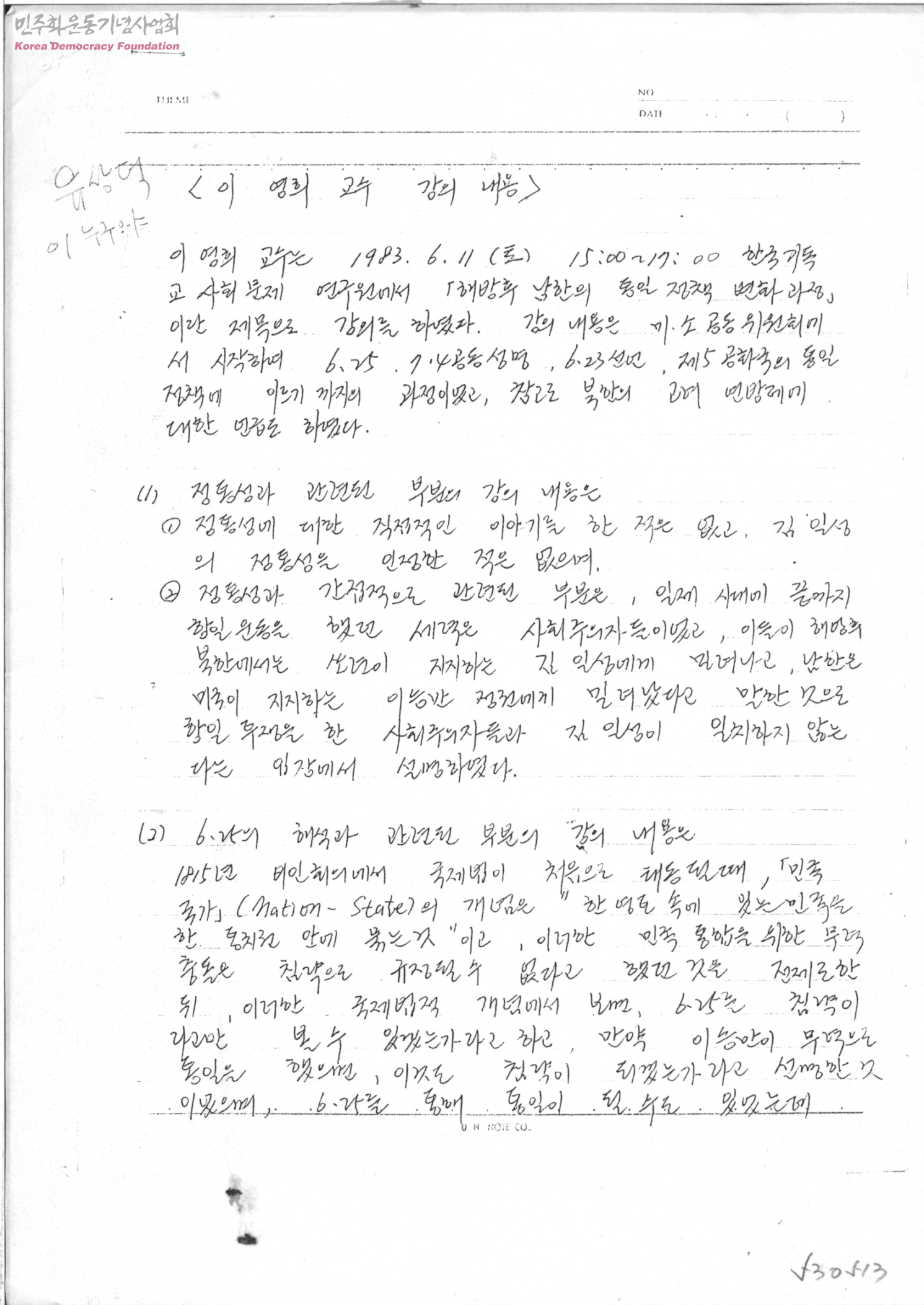 [리영희교수와 강만길 교수 강의 내용]