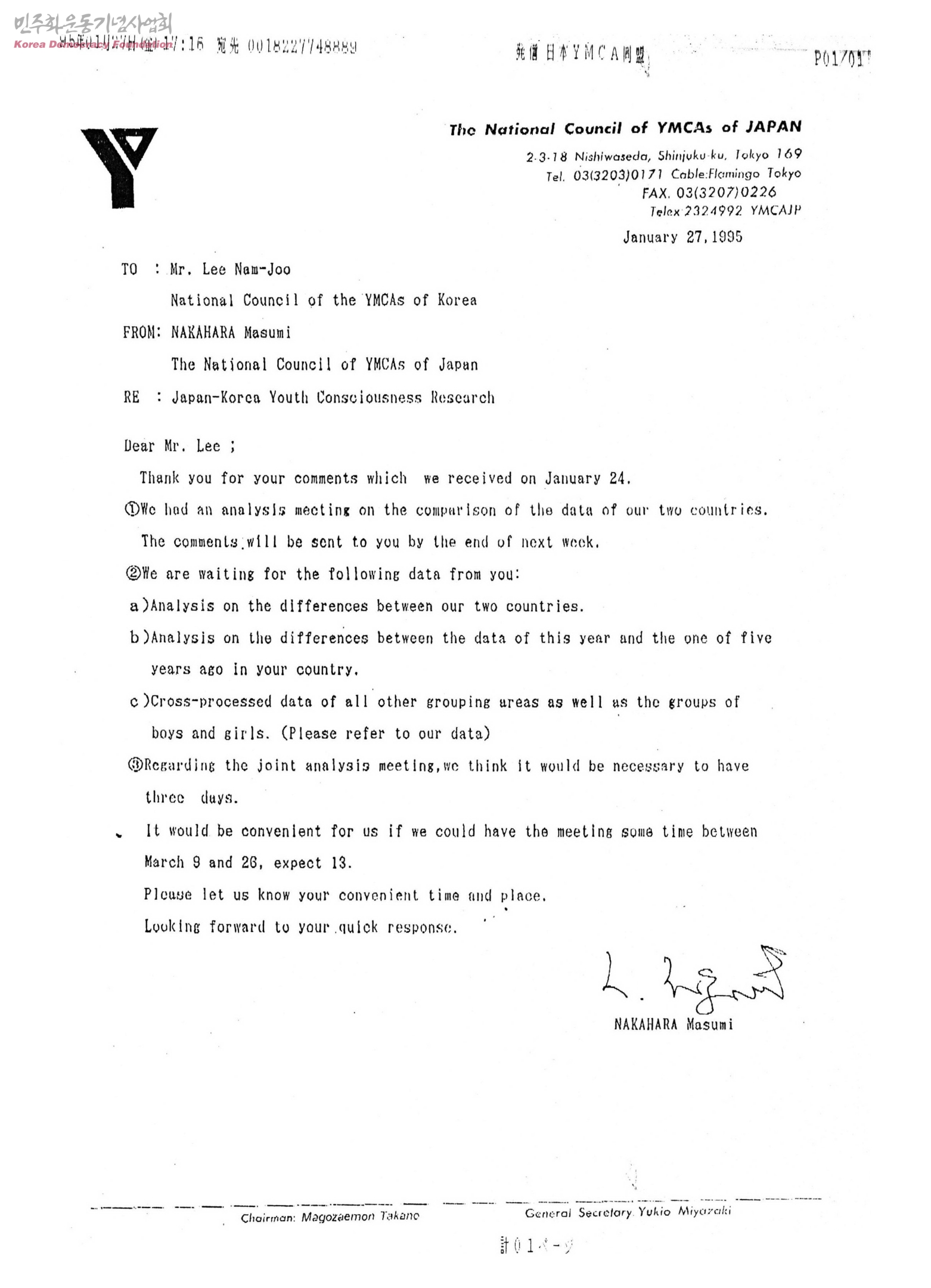 Japan-korea Youth Consciousness Research[수신:National Council of YMCAs of JAPAN,발신:National Council of the YMCAs of Korea]