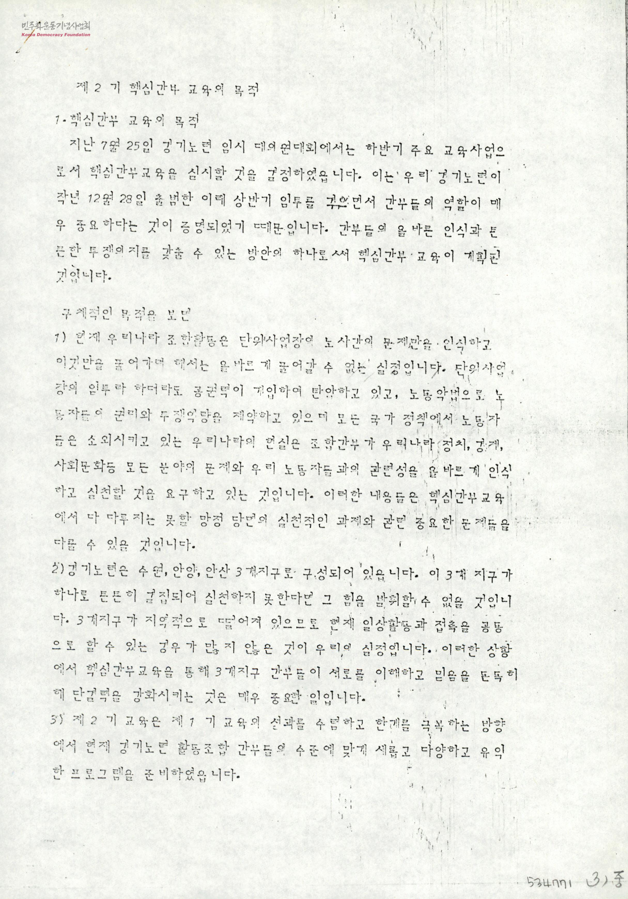 제2기 핵심간부 교육의 목적