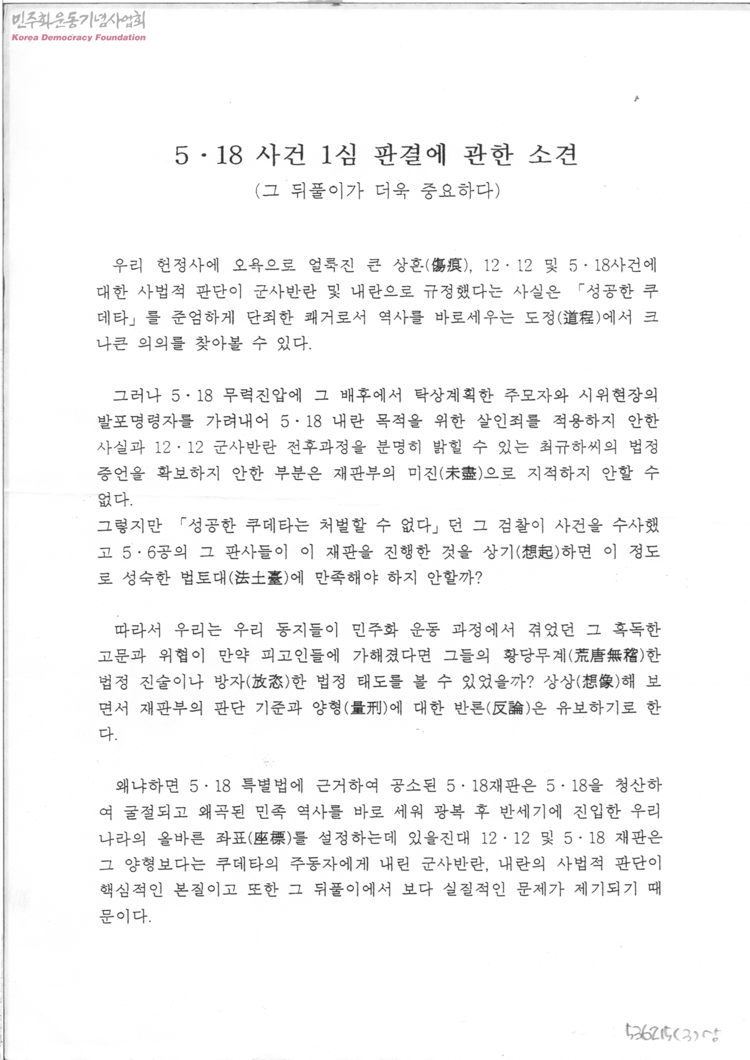 5.18 사건 1심 판결에 관한 소견(그 뒤풀이가 더욱 중요하다)