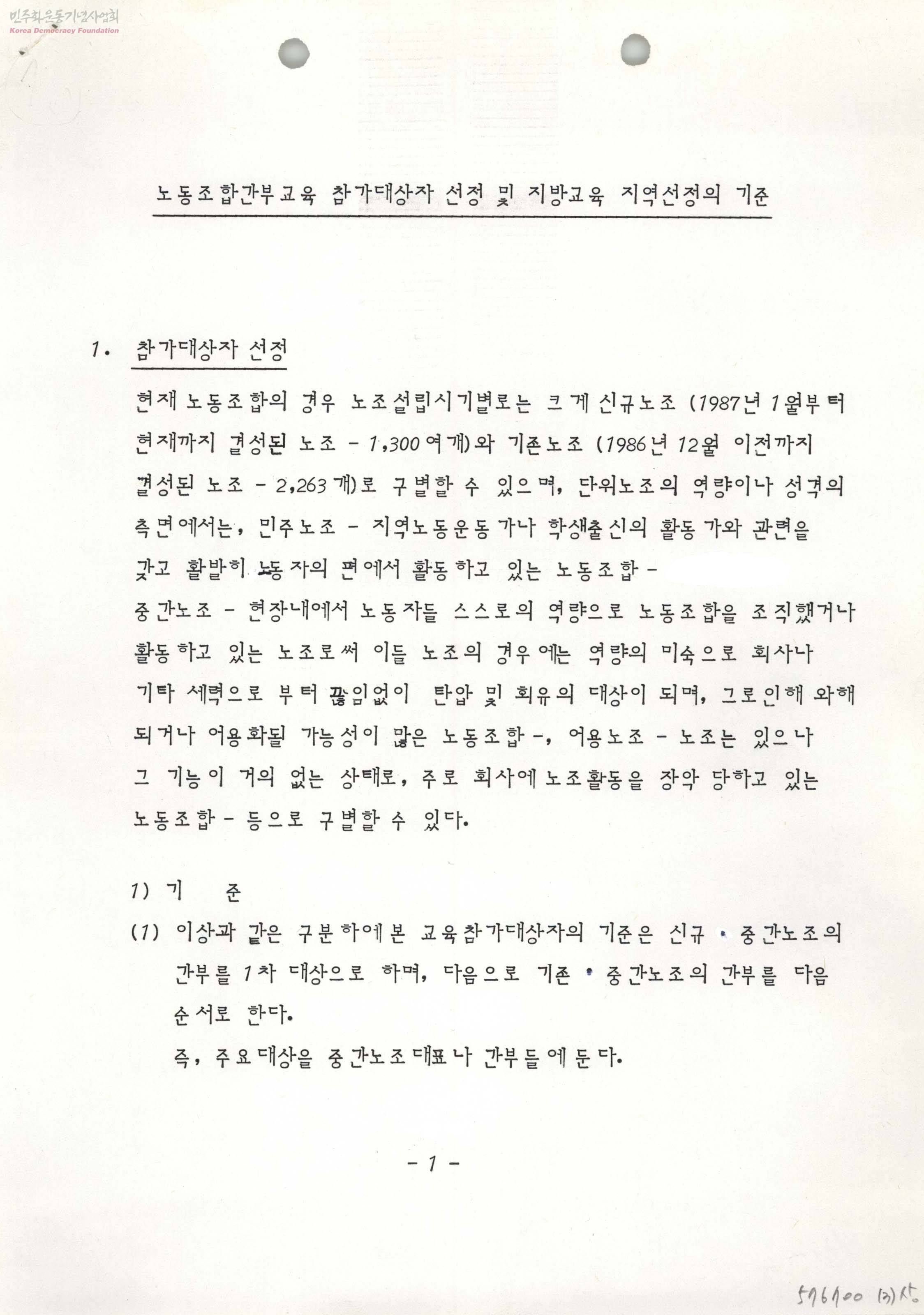 노동조합간부교육 참가대상자 선정 및 지방교육 지역선정의 기준