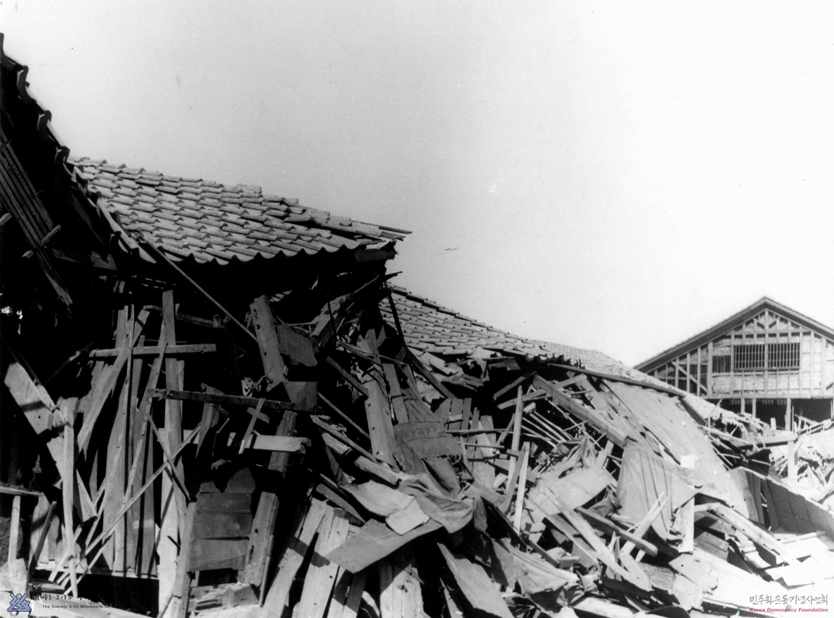 - 사진뒷면 메모: 사진은 당시 마산 3.15 부정선거를 감행한 모씨의 집이 파괴된 모습