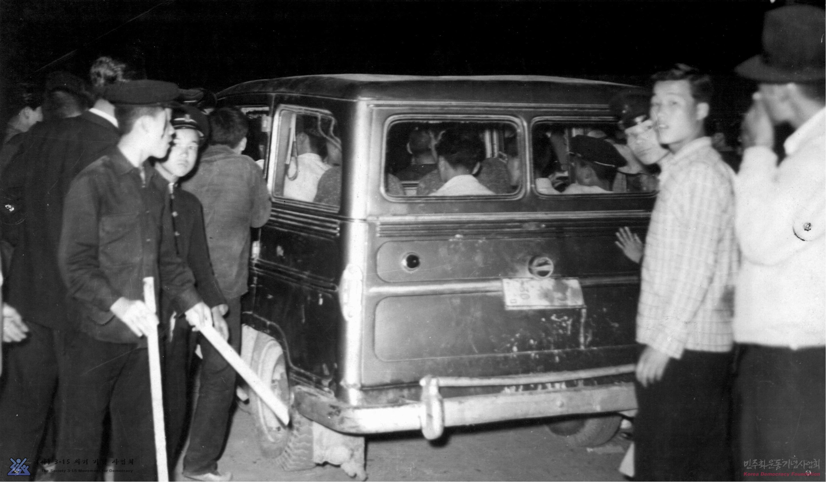 [경찰에의해 차량으로 연행되고있는 시위대의 모습]