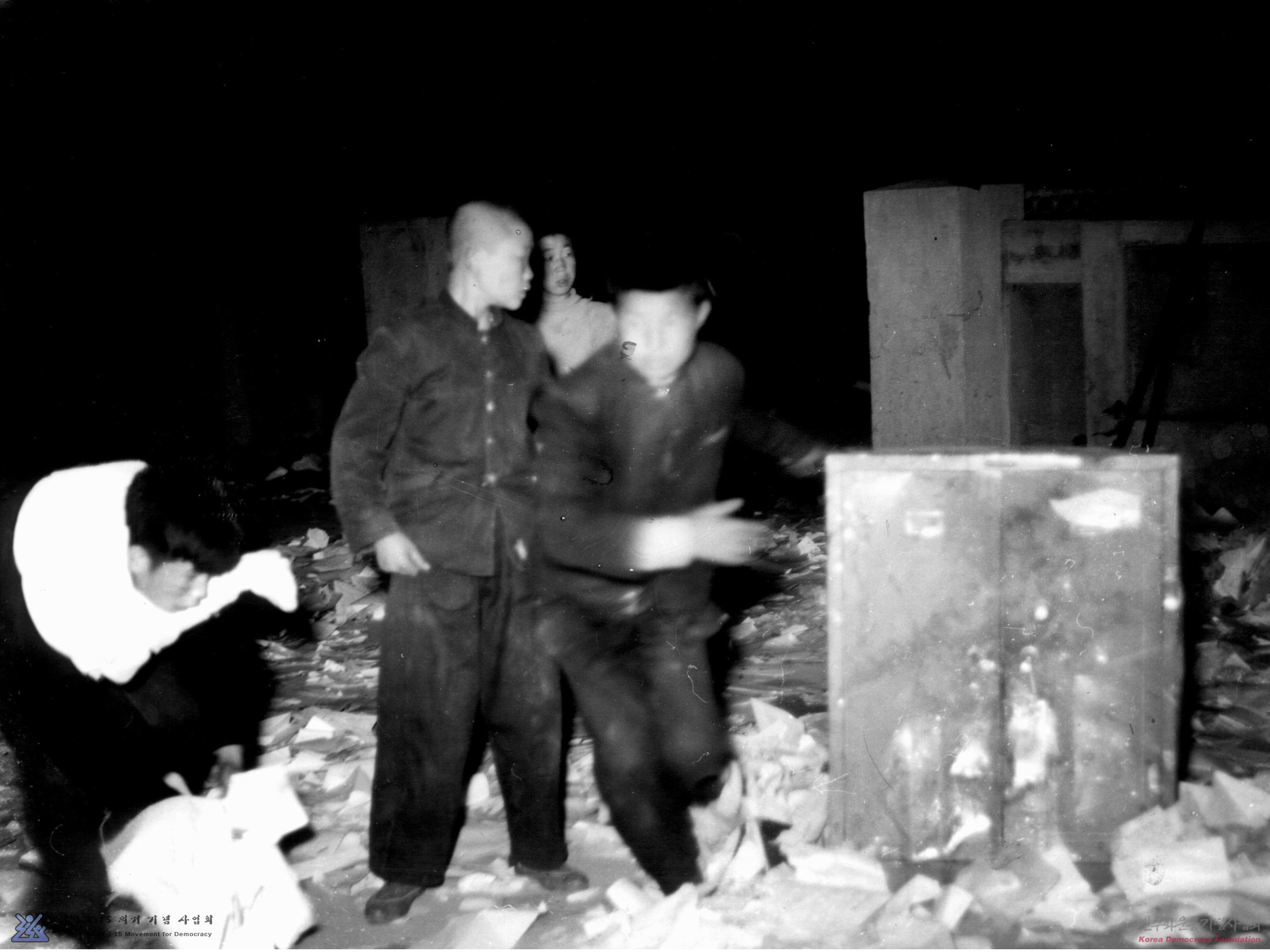 [제2차 마산의거 당시 사건수습회의가 열리고 있었던 창원군청에 시위대가 급습하여 어린 학생들이 수라장을 벌이고 있는 광경-창원군청에서]