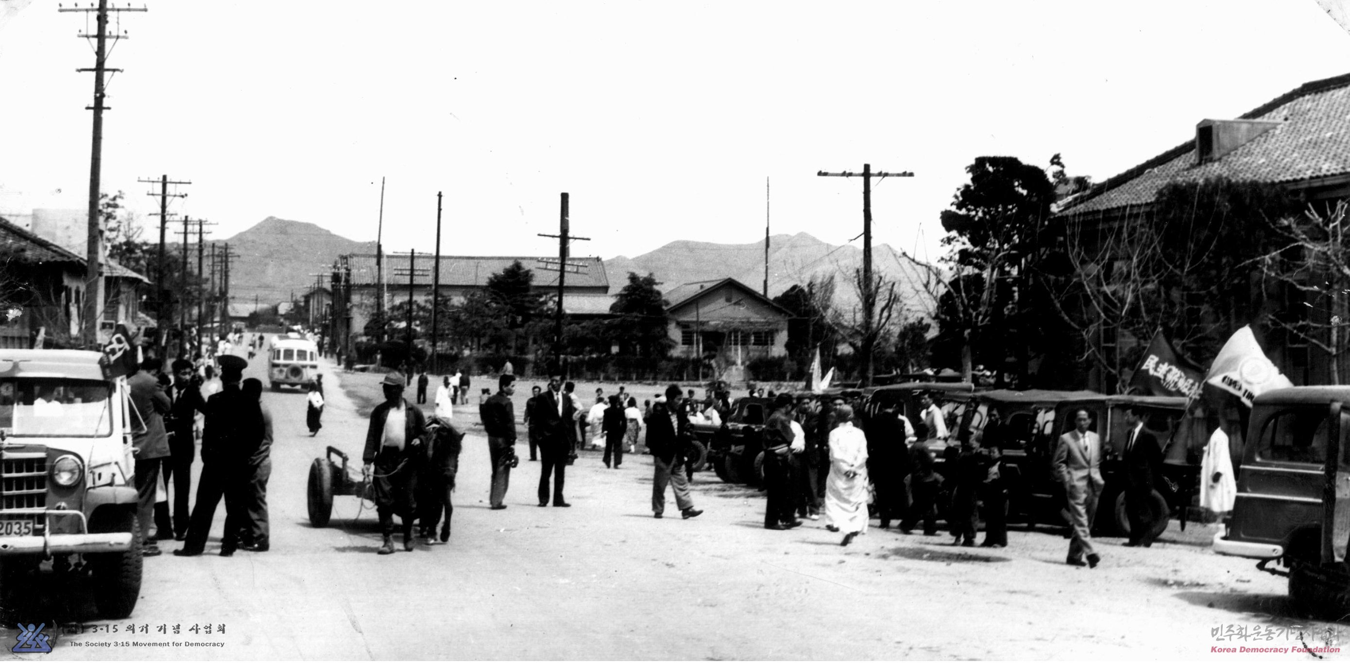 [열띤 취재경쟁이 있었던 마산경찰서 앞 가두의 취재진과 거리의 모습]