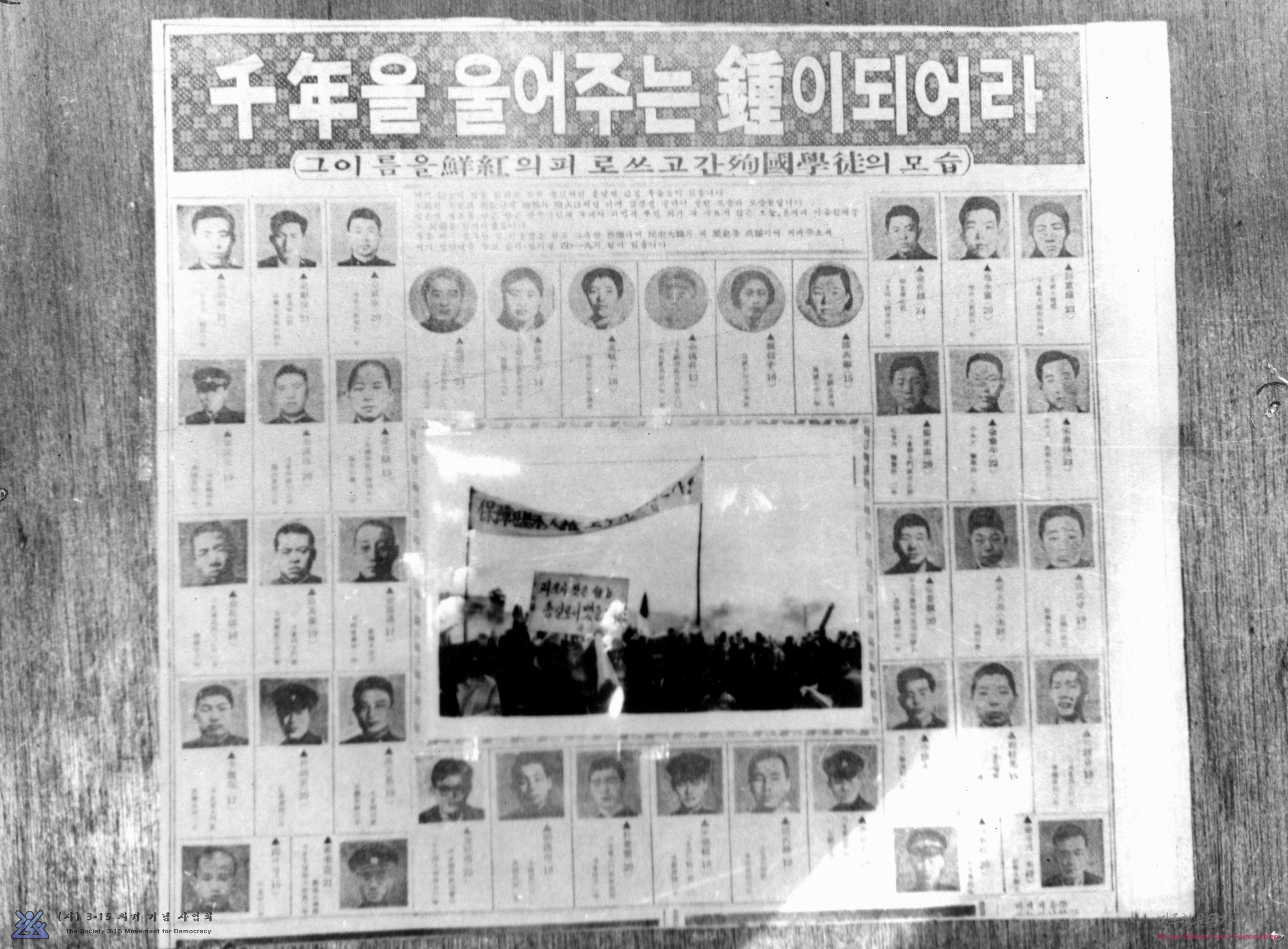 [자유당정권의 온갖 만행, 부정, 비민주적 처사에 결연히 항거하다 꽃다운 나이에 운명을 달리한 청년학도들의 모습]