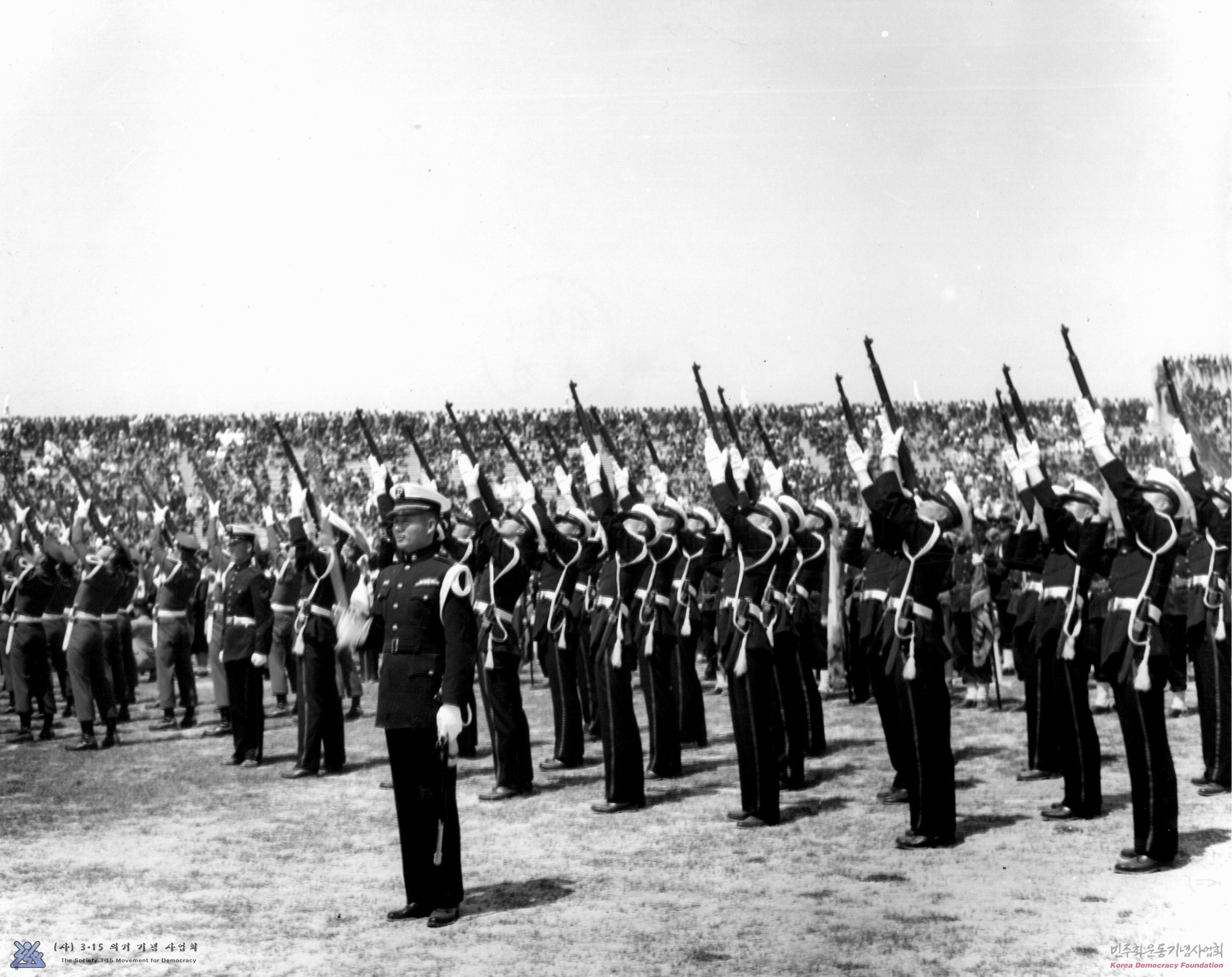 [제1주년 4.19기념식 및 추념식-의장대의 조포발사 광경(서울)]