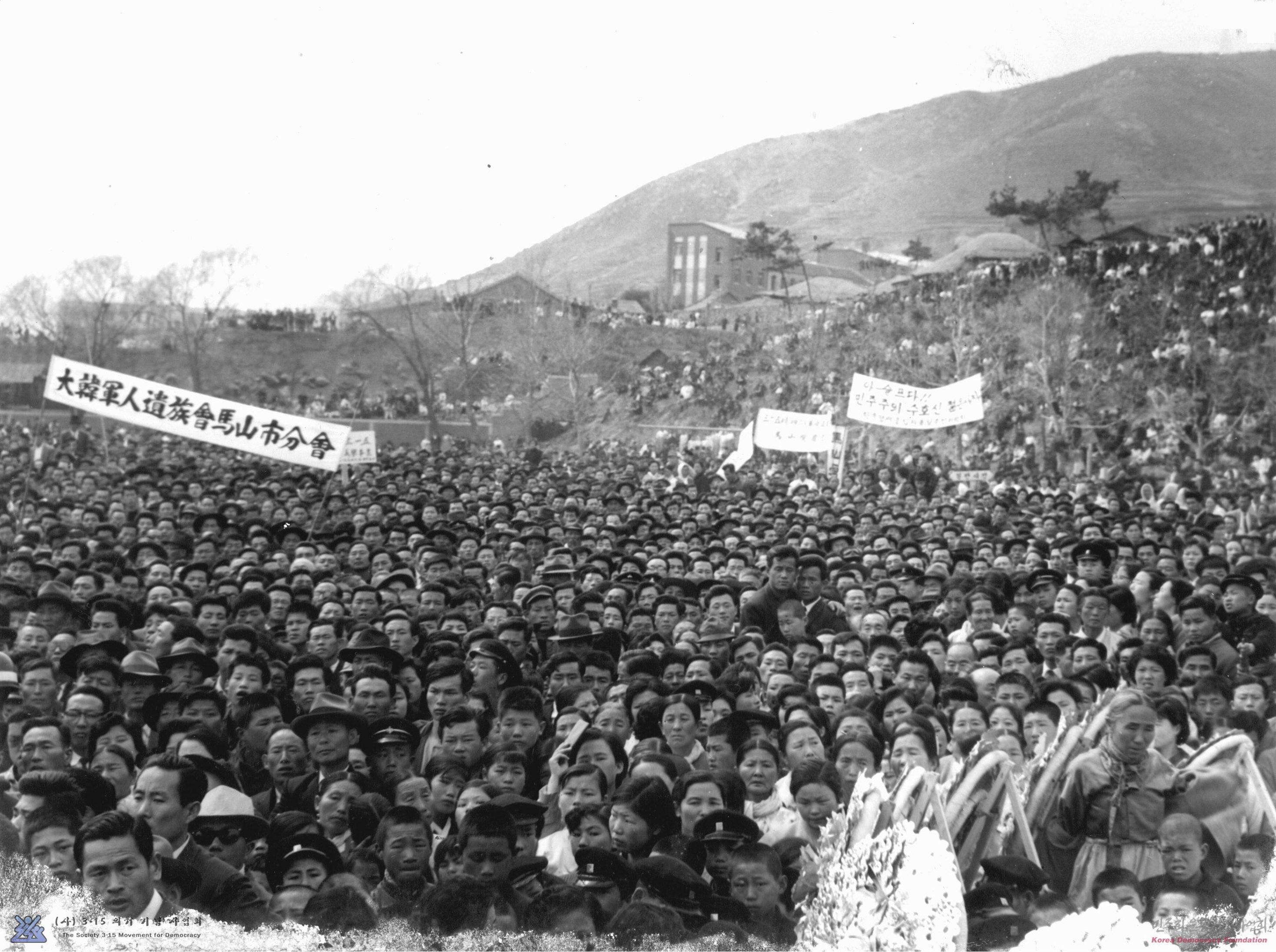 [제1주년 3.15의거 추도제에 참석한 수많은 마산시민들의 광경-마산고등학교 교정]