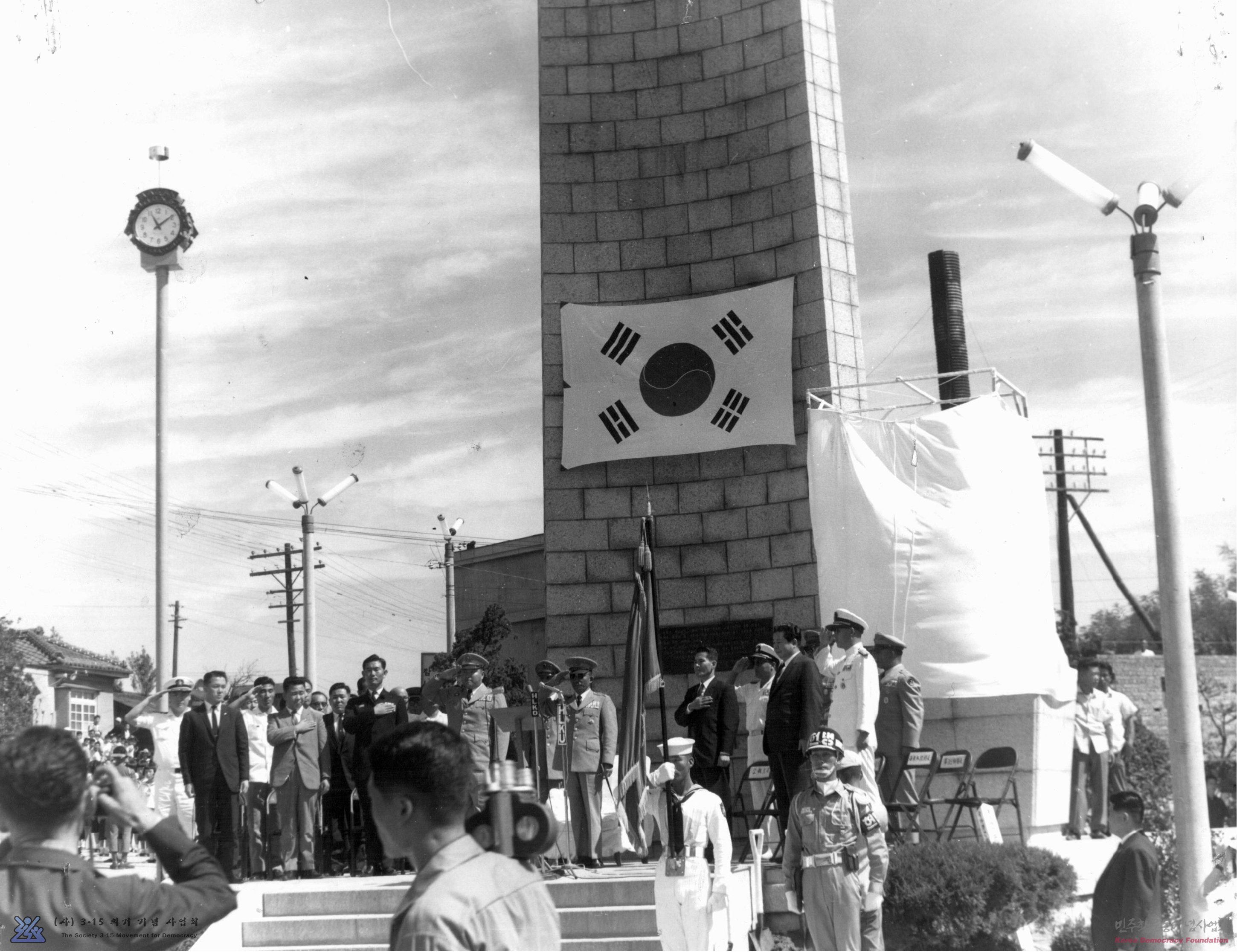 [3.15의거탑에서 3.15의거 기념 상징 조형물 제막식-국민의례를 하고 있는 광경]