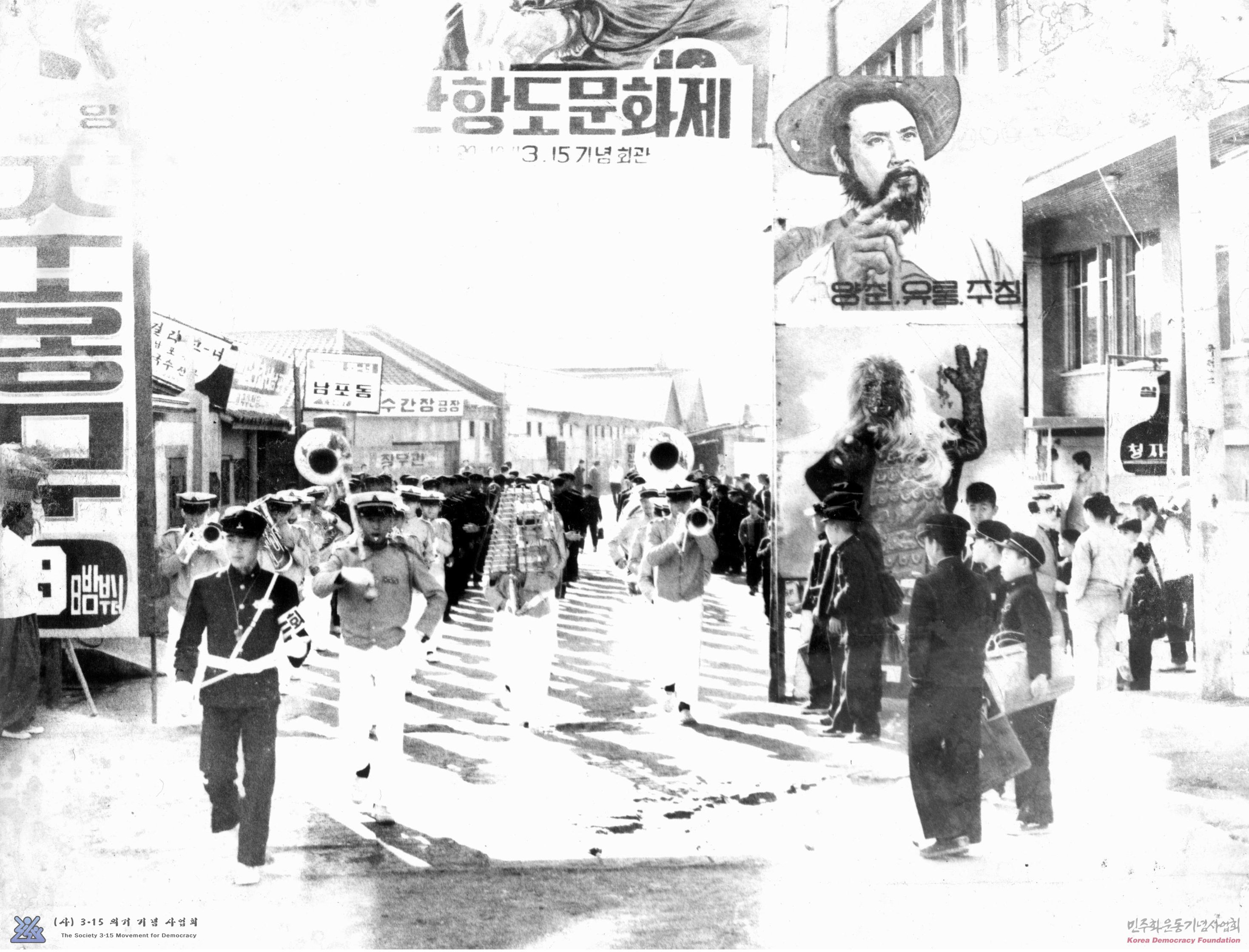[마산항도문화제 서막식 당일 시가에서 축하행진을 하고있는 마산상고 "브라스 밴드"]