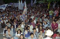 민주당원 제정수로부터 그날의 상황을 취재하고 있는 방송국 특파원