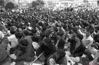 교직원 노조 결성을 위해 투쟁하는 시위대의 모습