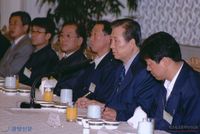 광주항쟁 추모 단식농성장을 찾아 격려 인사를 하는 김대중