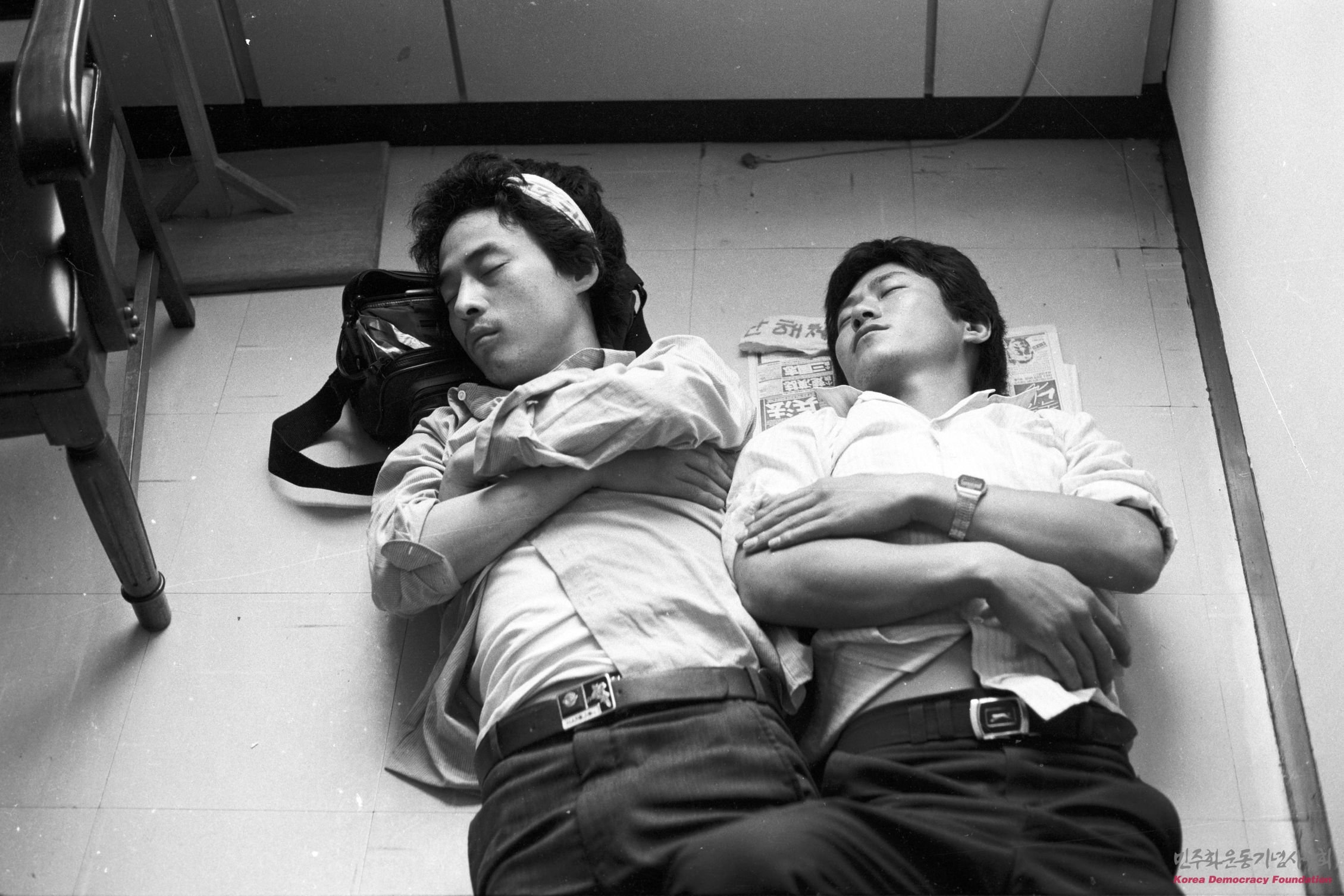 신민당 총재실에서 농성을 벌이다 쓰러져 잠이 든 해고노동자들