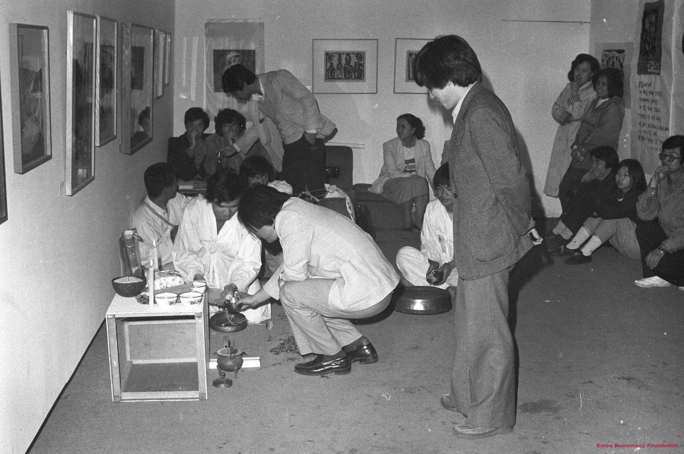 인병선 여사의 제3미술관 금강 오픈전이 잘되기를 바라는 고사를 지내는 축하객들