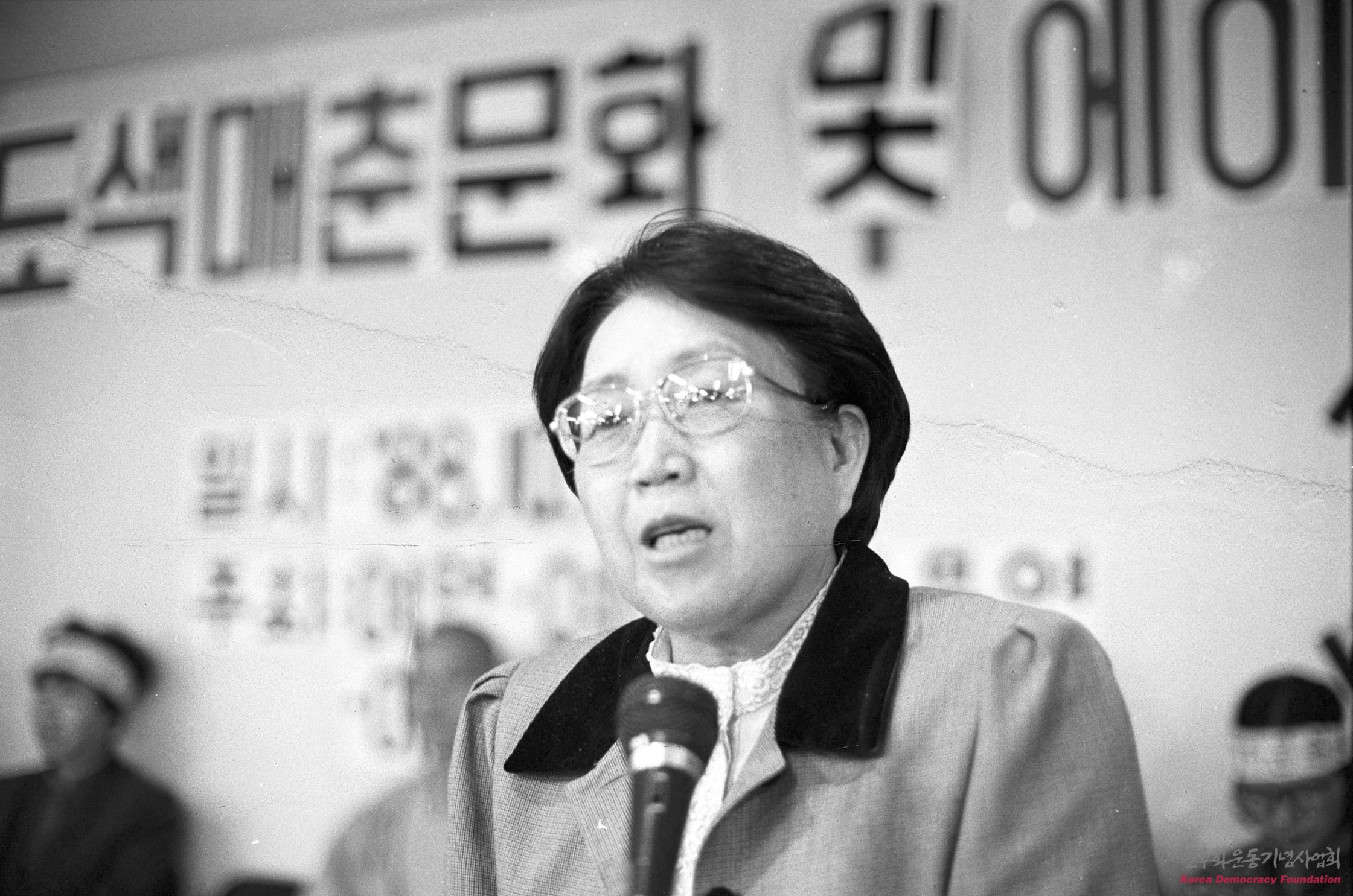 미국의 도색 매춘 문화 및 에이즈 추방 열의대회에서 강연을 하는 이우정