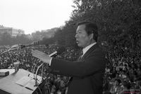 현대중공업노조에 대한 폭력정권 및 테러재벌 만행 규탄대회에서 연설을 하는 이부영