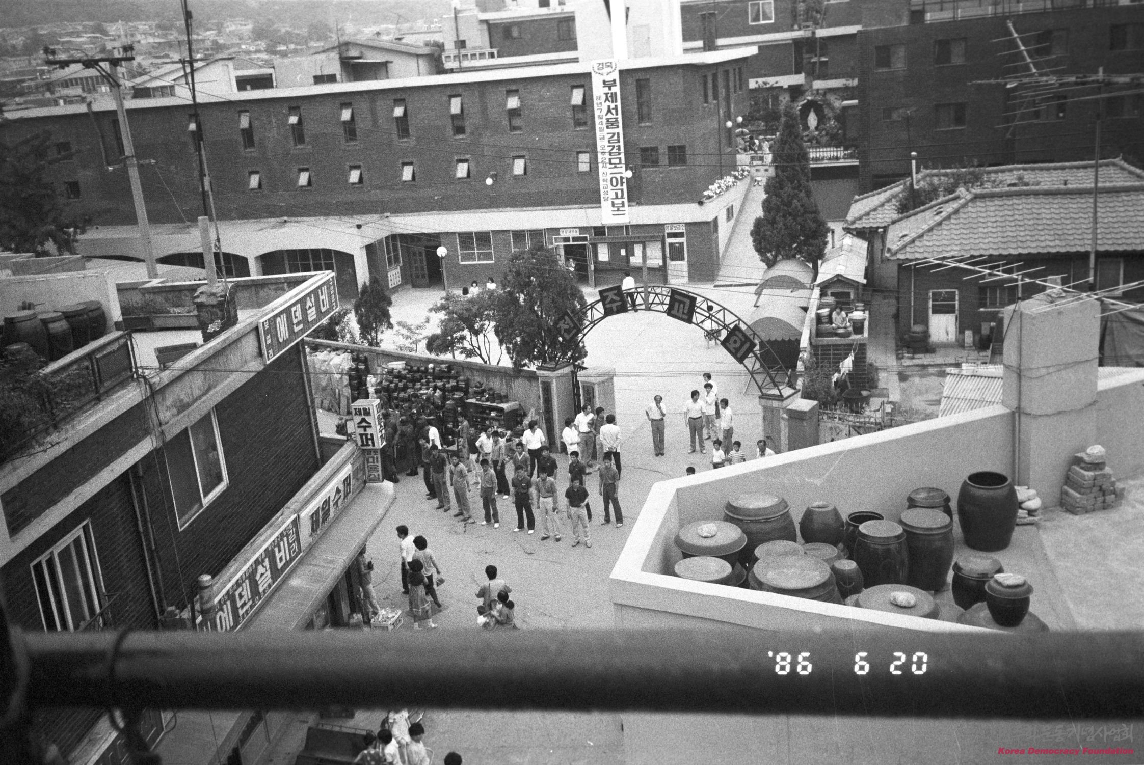 군사독재 퇴진 및 민중민주화운동탄압 규탄대회장인 홍제동 성당을 봉쇄한 경찰