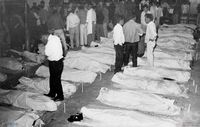문익환 의장의 공판 뒤 공정한 재판을 요구하는 시위대