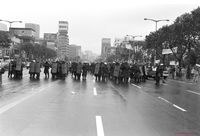 6월 항쟁에 시민의 참여가 늘어나는 가운데 경찰과 대치 중인 대학생들