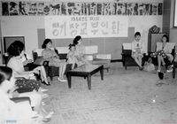 '민주운동 탄압하는 집시국보법 철폐하라' 머리띠를 두르고 농성에 참가한 학생