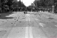 이한열 열사의 장례행렬를 향해 쏜 최루탄 연기 속에 가려진 태평로