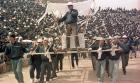 민족시인 고 채광석 민주문화인장 영결식장에서 넋을 놓고 앉아 있는 미망인과 외아들