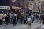 트럭에 올라가 구호양곡을 나눠주기 시작한 마을사람들