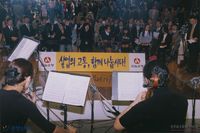 민주노동자 고 이석규 열사 민주국민장 영결식에서 춤을 추고 있는 이애주