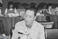 민주주의와 민족통일을 위한 사회운동 집들이에서 연설하는 문익환과 재야인사들