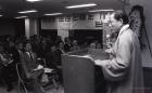 명동성당에서 열린 "도시빈민 생존권 쟁취 대회" 에 참석한 도시빈민, 학생 3백여명 앞에서 연설하는 민주인사